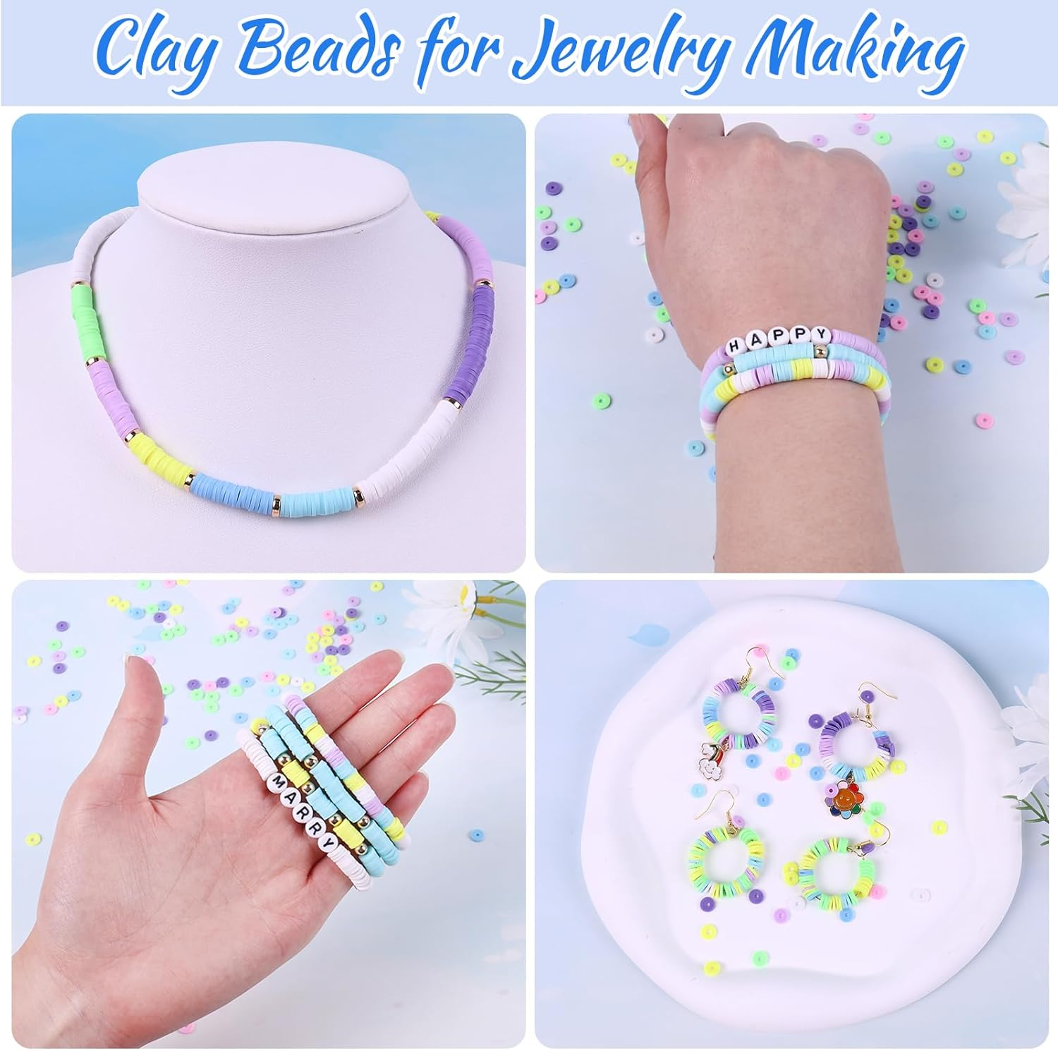 Menu Other Items Feedbacks About Us Contact Us Add To Favorites 3500 PCS Pastel Clay Beads for Bracelet Making Kit, Polymer Macaron Heishi Beads for Jewelry, Friendship Bracelet Kit with Spacer Letter for Necklace Earring DIY for Adults 🍏Complete Bracelet Making Kit: You will receive 3,280 clay beads, 120 random letter beads, 80 metal spacer beads, 6 beautiful rainbow charms, 6 pieces earrings, and various small accessories. Our clay bead set is an all-in-one solution for creating bracelets, necklaces, earrings, bag chains, and more. No need to purchase anything extra. 🍓Organised Clay Beads Kit: Unlike others, our bracelet making kit comes complete with a plastic storage box for the clay beads. All components are meticulously organized within the storage box. This ensures that when you're crafting, you can easily access the accessories you need without the frustration of searching through chaos. When not in use, swiftly pack everything back into the box, preventing any misplacement and ensuring a hassle-free setup for your next crafting session. 🍋Premium Quality Materials: Crafted from high-molecular polymer clay, the flat heishi beads boast attributes such as lightweight nature, odorlessness, waterproof qualities, and exceptional colorfastness. Each clay bead possesses a 6mm diameter, 2mm hole diameter, and 1mm thickness, catering to diverse jewelry-making projects. 🍇Delight in DIY Crafting Fun: Our clay bead bracelet making kit is tailor-made for crafters. It unlocks a world of possibilities for creating diverse jewelry pieces, ranging from bracelets and necklaces to earrings, phone chains, bag chains, and beyond. People are bound to adore this product, and adults can relish crafting an array of jewelry for everyday coordination. 🍍Ideal DIY Crafts Gift: The clay bead kit not only ignites people enthusiasm for crafting but also enhances their creativity, imagination, color recognition, and hand-eye coordination. This jewelry set is an excellent option if you aim to create handmade ornaments, necklaces, earrings, or friendship bracelets as a distinctive and meaningful gift for occasions like Thanksgiving, Halloween, Christmas, birthdays, or Mother's Day. Product Description Wuollgess Bracelet Making Kit Series Add to Cart Add to Cart Add to Cart Add to Cart Add to Cart Add to Cart Customer Reviews 4.4 out of 5 stars 134 4.4 out of 5 stars 134 4.4 out of 5 stars 134 4.4 out of 5 stars 134 4.4 out of 5 stars 134 4.4 out of 5 stars 134 Price $9.99 $ 9 . 99 $9.99 $ 9 . 99 $8.99 $ 8 . 99 $9.99 $ 9 . 99 $8.19 $ 8 . 19 $9.99 $ 9 . 99 Colors 8 Colors 4 Colors 4 Colors 4 Colors 2 Colors 4 Colors Beads Color Rainbow Pink Blue&White Green Black&White — Beads Styles Clay Beads & Letter Beads Pink Clay & Pearl Beads Clay Beads & Letter Beads Clay Beads & Letter Beads Clay Beads & Letter Beads Clay Beads & Letter Beads Charms Styles Rainbow Charms Pink Charms Blue Charms Green Charms Black White Charms Pink Grey Charms Make Your Own Jewelry Bracelet Necklace Earrings Bracelet Necklace Earrings Bracelet Necklace Earrings Bracelet Necklace Earrings Bracelet Necklace Earrings Bracelet Necklace Earrings Item Specification Item model number J-F-231223 Item dimensions L x W x H 8.27 x 5.51 x 0.71 inches Age Range (Description) Adult Color Pastel Material Clay Country of Origin China Item Weight 11.3 ounces Size Small Model Name 3500 CLAY Number of Pieces 3500 Product Dimensions 8.27 x 5.51 x 0.71 inches SHIPPING FREE FREE SHIPPING We are always working hard to ensure your package arrives as soon as possible. Please understand that some factors like weather, high postal traffic, and the performance of shipping companies are outside of our control. We offer free shipping to the lower 48 states. We do not accept P.O. Boxes. Please provide a physical address. If you have a problem or question regarding your transaction please contact us immediately. We will work with you to resolve any problem you may have. Thank you