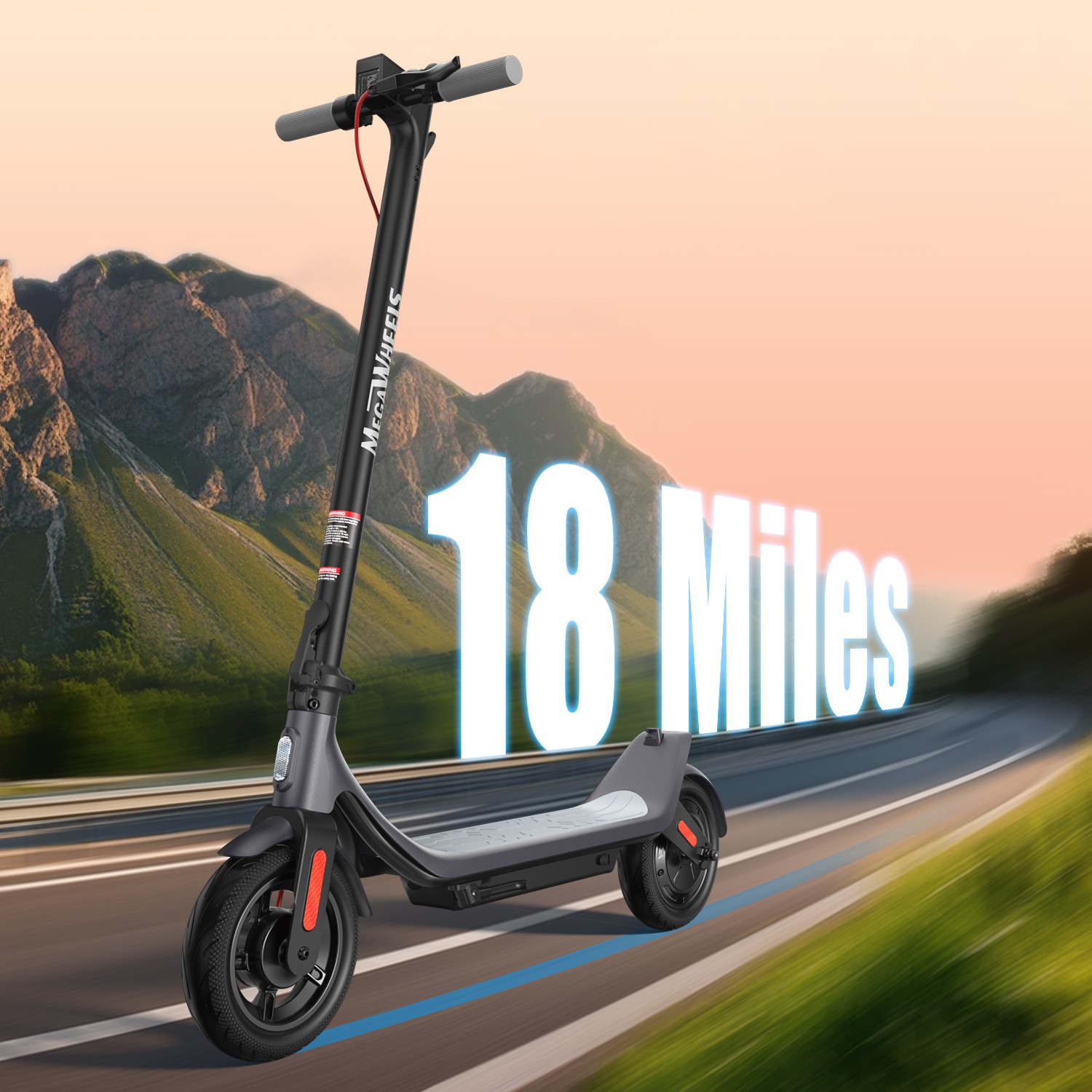 Features: Smart Dashboard : intuitive dashboard provides clear visibility of your current speed, speed modes, light status (on/off), and battery life, ensuring effortless monitoring and control throughout your journey. Long Battery Life and Waterproof : electric scooter is equipped with a large-capacity 10.2Ah battery, with a maximum cruising range of up to 18 miles, ensuring long-term uninterrupted riding, and is also waterproof for small raining. Portable Folding Design: Its rapid folding feature allows for easy handling and storage. Compatible with the majority of car models, it effortlessly fits into car trunks, ideal for daily commutes. Conveniently store it in office hallways or at home in your backyard or indoors , taking up minimal space. Safety Design : Safety is our top priority, so the electric scooter is equipped with warning tail lights and ultra-bright headlights to ensure visibility when riding at night. Smart APP Control : The APP is compatible with Android and IOS, connects to the electronic scooter via Bluetooth. You can control through the APP: Lock/Unlock, Light On/Off, Gear Position, Starting Mode (Zero Start or Non-zero Start), Top Speed, Cruise Control, etc. The App offer more functions for your electrical scooter. Specification: Brand: MEGAWHEELS Model: A6L ECO Net Weight: 36.05 LBS Expanded size(in): 44.29×17.32×47.40 After Folding(in): 44.29×17.32×21.06 Tire size: 10 inch Battery Capacity: 10.2 Ah Rates Power: 350W Charging time: 8H Maximum speed: 15 Mph Distance per charge: 18 Miles Grade ability: Approx. 15% Maximum load : 220 LBS IP Rating: IPX5 Age (years):10+ Height (in): 4.72~7.87 Packing List: 1 * Electric Scooter 1 * User Manual Note: This products have been certified under UL2272 safety standards. Riding Skills: -Put your foot in the front of the scooter and the other foot on the floor before riding. -Make sure that the riding route is smooth. -Slide forward with the food standing on the floor before starting (like riding the scooter without power). -Immediately press the acceleration button and lean forward to avoid falling over backward due to inertia, so that the electric scooter will enter the working status. -Avoid pressing the handle with your body in the acceleration and deceleration process. Put one foot ahead and the other behind (like on the sliding plate/surfboard, put one foot ahead and the other behind by 70-90 for better comfort). -Turning – The turning principle of the electric scooter is the same with that of surfboard/sliding plate/skis. The handle shall be balanced with the body. Observe and make sure that turning is safe before turning. Tips: Before riding the scooter, please put one foot on the scooter deck and the other foot on floor and push the scooter forward by kicking the floor for some distance, in this way, the scooter will get some impulse to run forward. On Jul 7, 2025 at 20:57:36 PDT, seller added the following information: