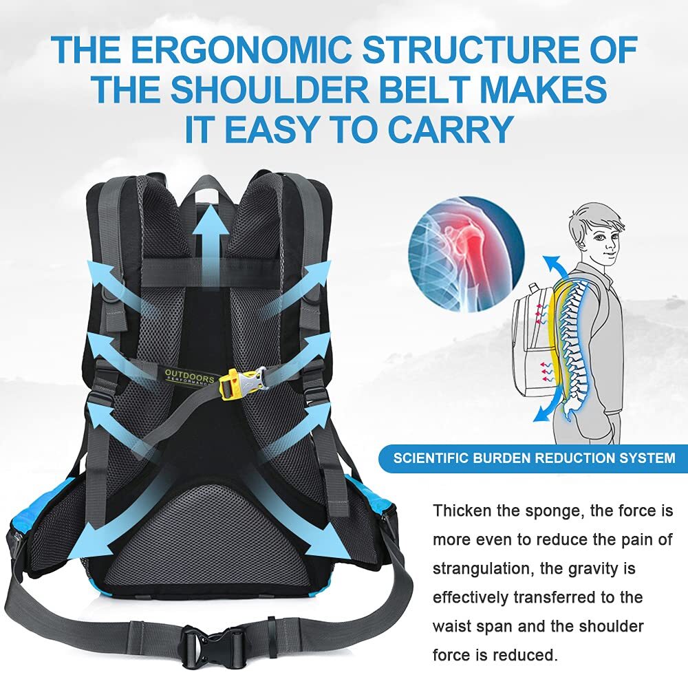 This backpack is a game-changer for hiking and travel! The ergonomic design keeps it comfortable even on long treks, and the breathable back panel prevents sweating. The 35L size is perfect for day trips, and the included rain cover is a lifesaver in bad weather. Lightweight yet durable, it holds everything I need without feeling bulky. The blue color looks great, and the multiple pockets keep gear organized. Highly recommend for anyone who loves the outdoors!