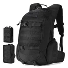 This 35L Military Tactical Backpack is Made of 600D Polyester, YKK Zippers & Duraflex Buckles. This Hiking Daypacks is Equipped with 10 D-Rings and 2 Tactical Patch. Tactical Backpack Size Appro: 12"*20"*11.2" / 30*49.5*28CM (W*H*D), and Appropriately Sized 35L Capacity. This Tactical Military Backpack with Hydration Compartment Space and Can Hold a 2 Liter Hydration Bladder (Hydration Bladder is Not Included). The Waist Straps on this Tactical Backpack are Sewn Together, But you Can Slide Them Into the Back Padding to Support the Center Space in the Back. You Can Slide them Out if Necessary. We offer you the Molle System on the Waist Belt. Convenient for Extra Hanging. The Patch Area on the top of this Camping Backpack Can be used to Stick Your Favorite Patches. Molle Webbing Through the Entire Tactical backpack, used to connect additional tactical bags or equipment. The Molle Backpack Also has a Bottom Compression Strap, Which Can be Used to Hang Sleeping Bags, Tripods, or Tents. The Backpack is Equipped with a Rain Cover. This Molle Backpack is Suitable for Outdoor Activities, it's your Trekking Backpack, Hunting backpack, Survival backpack, Motorcycle Backpack or Hiking Daypack.