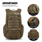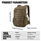 Description Tactical Molle Backpack Rucksack Bag Military Backpack for Camping Hiking Trekking Traveling Product Fetures Numerous Molle Webbing can hang gear that your need. Patch Area for your favorite badges. Two Side Pocket with zipped. Front Zipped Pocket includes organization slots for tools,camera,maps and other items. Sewn-in Belt can be slid into middle space behind back padding support, slid out when needed, fits snugly and won't slide out by itself. This tactical backpack can be well used as A 1-3-day assault pack,tactical bakpacks,molle backpack,combat backpack,range bag,rucksack military army backpack or trekking backpack. Product Parameters Fabric: 600D Polyester Capacity: 35L Item Weight: 1.18KG Product Dimensions: 12.4 x 8.7 x 19.7 inches (31.5 x 22 x 50 cm) Washing & Maintenance Suggestion 1. 600D polyester. Please do not wash with liquid detergent or bleach. 2. Clean with wet cloth if necessary. 3. Air dry. 4. Please do not iron it. Package 1 X Tactical Backpack Durable Material:This 35L tactical backpack is made of 600D polyester and includes a RAIN COVER,The buckle and zipper are all made of YKK,Size:12.4*8.7*19.7 in(L*W*H),1.18kg Hydration Compartment:This motorcycle backpack with hydration compartment and can hold a 2.5 Liter hydration bladder,HYDRATION BLADDER IS NOT INCLUDED,the tube is fed through the top of the bag near grab handle Consummate Design:This skateboard backpack can hang on small items, or for attaching additional pouches or gear,Backpack also has bottom compression straps,it can hang your sleeping bag,tripod or tent,There is also a patch area on the top of the backpack, which can be used to paste your favorite badges Waist Belt Design:The waist belt of this military backpack is stitched in, but you can slide them into the middle space behind the back padding support,It is a pretty snuggle fit and won not slide back out on its own Ideal Outdoor Companion:This small tactical backpack with chest strap is suitable for outdoor activities,it is your best choice for a 3 day assault pack,trekking backpack,camping backpack,motorcycle backpack or hiking daypack