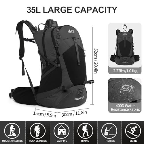 Return Policy Fast Delivery Trusted seller Hiking Backpack,35L Waterproof Hiking Daypack with 3L Water Bladder and Rain Cover, Lightweight Travel Camping Backpack for Men Women (Black) Product Description 【Water-Resistant And Durable Material】Our IX INOXTO Hiking Backpack is made of high-density polyester material, water-resistant, tear resistant, with good abrasion resistance and environmental protection, suitable for any outdoor environment.High-quality durable zipper, well-sewn craftsmanship, high dense stitching. All of the backpack's stress points and shoulder straps are reinforced with lap-knots to ensure long lasting durability. Waterproof backpack comes free with a waterproof rain cover. 【Ergonomic Breathable Technology】Our Camping Backpack are 20.4 x 11.8 x 5.9 inches, 35L. Features a cutting-edge 3D touch suspension system that keeps your back comfortable and relaxed during travel. Breathable mesh on the back fabric can reduce sweating for extra comfort. Using steel frame support, the force is more evenly distributed, effectively alleviating the problems of muscle soreness caused by long-term weight bearing. Reflective design increases visibility and makes it safer at night. 【3L Leak-proof Water Bladder】The IX INOXTO Hiking Hydration Backpack comes with a 3 liter hydration water bladder. A switch valve and a cover cap make double leak-proof. Large opening allows quick filling of water and ice and it is easy to clean, the water line (40"length,0.4"diameter) provides a wholesome flow for easy drinking, the water temperature is range -20~+50℃. With this large-capacity hydration bladder, you can keep hydrated and active all day throughout your adventure. 【Large Capacity & Multi Compartment 】This Hiking daypack features multiple-compartments design for easy storage and organization. Includes one main zipped compartment, one zipped front pocket, one top pocket, two side pockets and two hip pockets, special bottom pocket provides access to the main compartment, access your items easily, stores shoes or dirty clothes when closed. Make everyone easy to carry all essentials such as keys, maps, sleeping bags,alpenstock, bottles or umbrella etc. 【Lightweight -- Easy To Carry】IX INOXTO 35L Hiking bag is well constructed and it's breathable mesh shoulder straps with plentiful sponge padding help relieve the stress from your shoulder (with shoulder strap adjuster buckle).Making your trips more comfortable. Ideal comfort for day-to-day use or day trips, vacations, travel, climbing, hunting, camping and shopping, and great gift for everyone. It meet size requirements for most airlines, perfect hiking backpack for outdoor activities! Shipping Returns Payment Shipping Shipping is FREE to all addresses other than APO/PO boxes in the lower 48 states. All our stock ships from US-based warehouses. Shipped via USPS or UPS (depending on location and package weight) Unless stated otherwise, all orders will ship within 24-72 hours of your payment being processed. Check our feedback to see the great reviews of FAST shipping we offer. Returns Seller does not accept returns Payment We currently accept payment via eBay managed payments only. Once payment is cleared, we will dispatch your shipment within 1-3 business days. Please refer to the "Shipping" tab for more information regarding shipping speed to your destination.