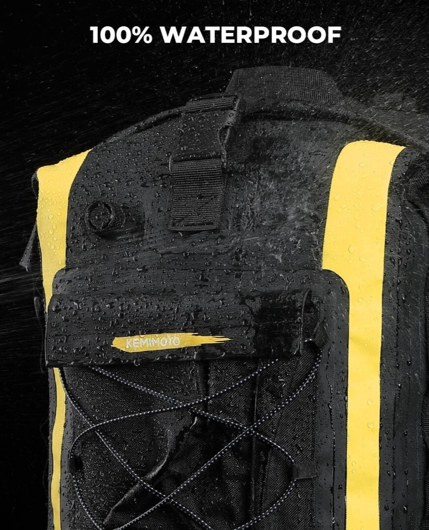 KEMIMOTO Motorcycle Backpack Waterproof 35L With Mounting Straps Motorcycle Dry Bag Motorcycle Sissy Bar Motorcycle Luggage Bag Riding Motorcycle Travel Bag Gear Bag For Motorcycle Trip Riding Yellow WHY SETH B'S DEALZ? • MSRP: $67 @ AMZN! • NEVER PAY RETAIL MARK-UP! • GREAT DEAL! • FREE STANDARD SHIPPING! -Expedited Priority Shipping Available! • BUY IT NOW OR MAKE AN OFFER! • LAST ONE AVAILABLE! Features & details WATERPROOF - The motorcycle dry bag is made of 500D PVC waterproof material. It can keep your things dry even on a rainy day. MOUNTING STRAPS - The motorcycle backpack comes with two mounting straps. Could be mounted on your bike as a tail bag. OUTSIDE POCKET - There has an outside pocket in front of the bag for small items. The bungee straps create extra storage. REMOVABLE SHOULDER STRAPS - Shoulder straps are designed as removable and easier to organize when mounting on the bike. 35L CAPACITY - The waterproof motorcycle backpack is 35L. It can meet capacity needs for short trips or commute to and from getting off work. There has a separate compartment inside, which can hold a 14 inches laptop Product Logo Logo designed as reflective area help to improve the improves visibility in the dark and improves the safety of driving at night Air Valve To release excess gas to compress space. Help to save more place for the tail of your bike. No Leak The PVC backpack adopts seamless hot-pressing technology, even in the pouring rain, the water will not seep inside.