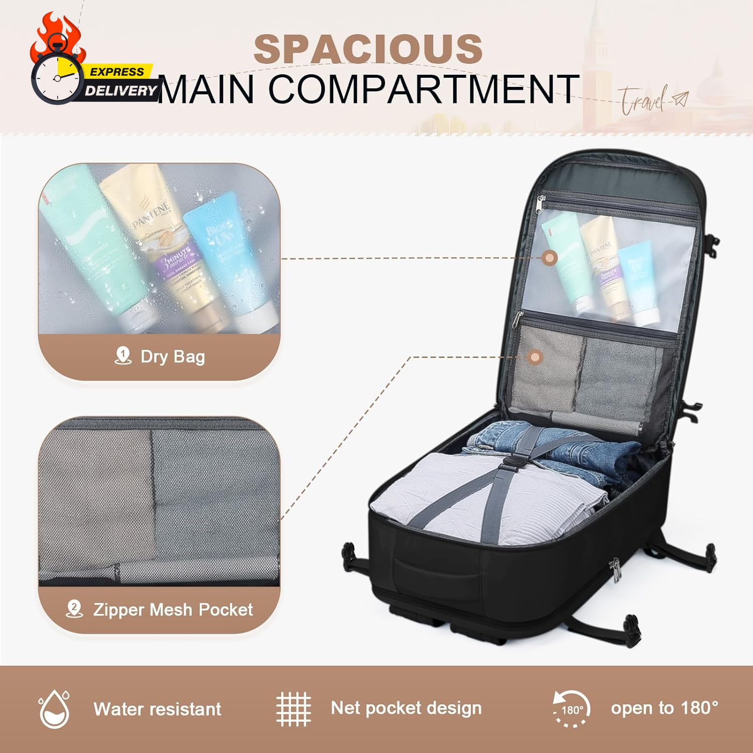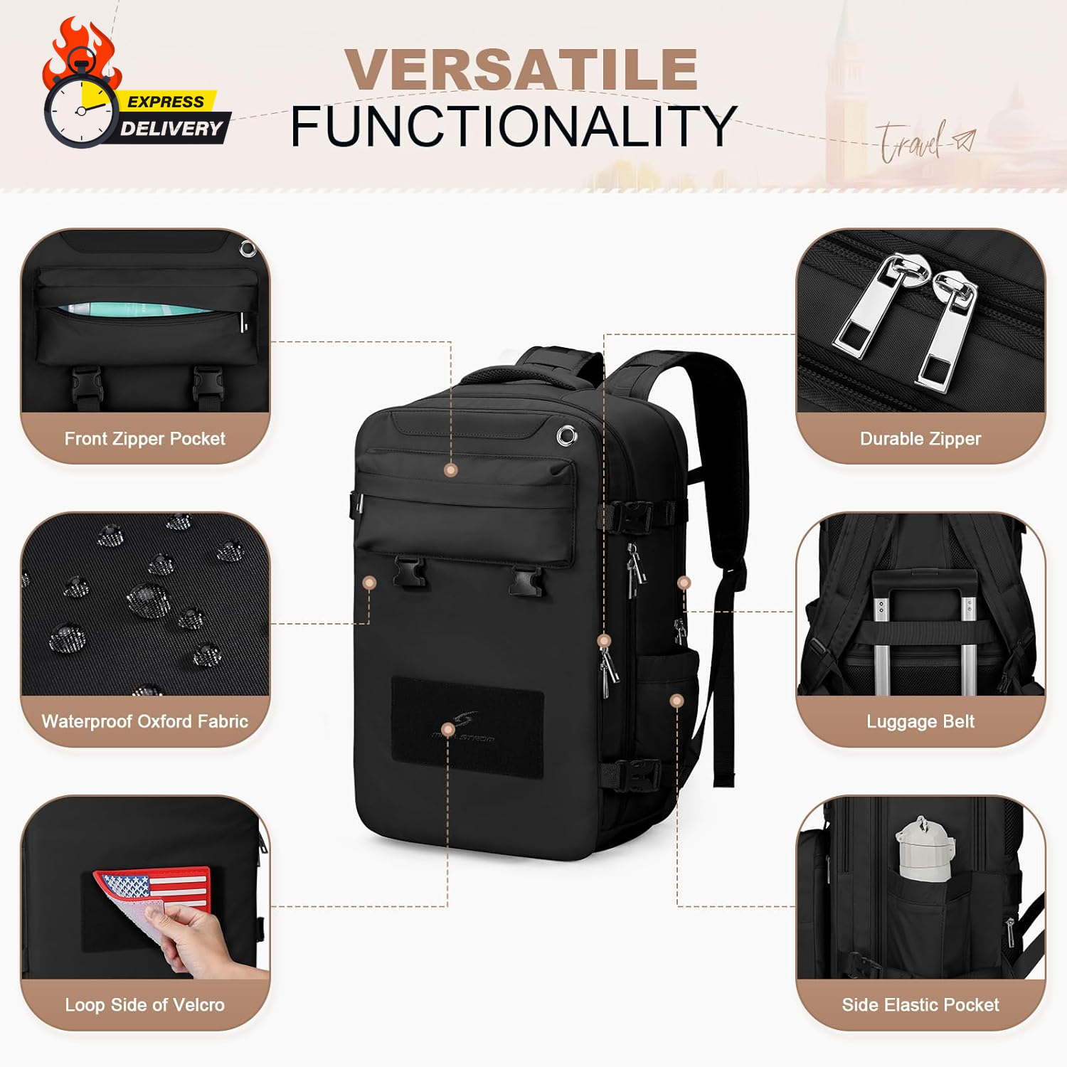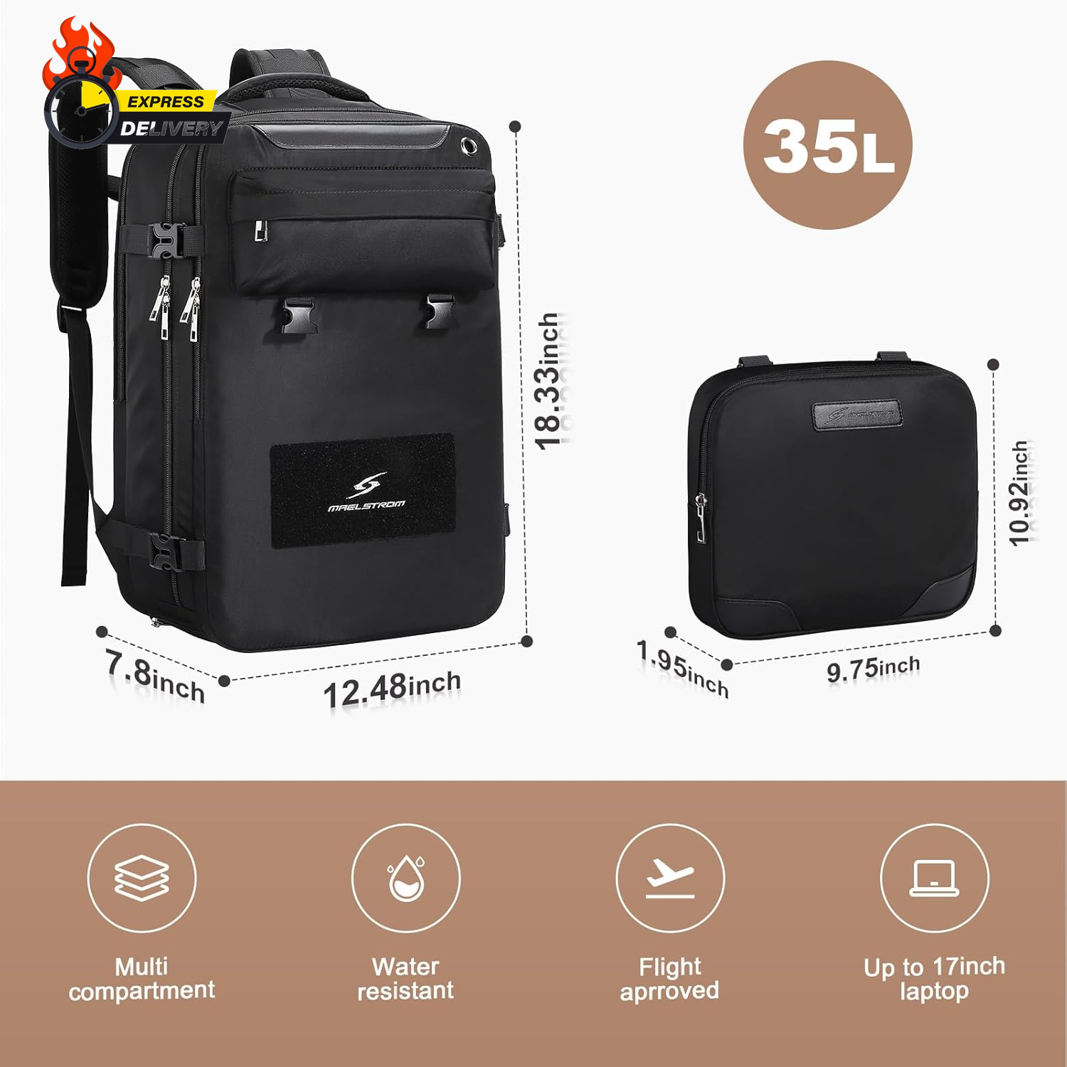 Store New Arrivals Add to Favorite View Feedback Contact Travel Backpack for Women Men,35L Laptop Backpack Fits 17-Inch Laptop,Waterproof Carry on Backpack for Airplanes with Detachable Crossbody Bag&Shoe Compartment,Black, Large Description Item model number MSTBP02 Age Range Description Adult Capacity Total 35 Liters Color Black Product Dimensions 7.8 x 12.48 x 18.33 inches Country of Origin China Item Weight 2.4 Pounds Department unisex-adult Size Large Versatile Shoe Compartment: This travel backpack features a dedicated shoe compartment, keeping your shoes separate and organized. Its breathable design ensures freshness and easy cleaning, making it an ideal choice for a travel backpack or hiking backpack. Enhanced Device Protection: Safeguard your laptop or iPad during travel with the padded compartment in this laptop backpack. It provides reliable protection against bumps and scratches, ensuring the safety of your devices. Airline Approved: Our carry on backpack for airplanes meets airline standards and fits perfectly both under the seat in front of you and in the overhead storage compartment, offering ample space to store all your travel essentials while ensuring it remains compact and lightweight for easy maneuverability. Convenient Travel Features: Enjoy hands-free transportation with the luggage belt that securely attaches the backpack to your carry-on luggage. This lightweight carry on backpack is designed for easy travel and also includes a back anti-theft pocket to keep your valuables safe and secure.The elasticated side pocket of this versatile backpack securely holds water bottles, umbrellas, and other travel essentials. Detachable Crossbody Bag: This waterproof laptop backpack women effortlessly transitions to a stylish crossbody bag, making it suitable for various occasions. Its versatile design caters to different needs and preferences.When using as a crossbody bag, take the interlayper out of the back zipper pocket and attach it to Velcro hook to avoid rubbing clothing. Maelstrom travel backpack is the perfect companion for your journeys! Its versatile design and exceptional suitability make it an ideal choice for travelers.Firstly, this waterproof travel backpack for women men features multiple intelligent storage compartments, effortlessly accommodating all your travel essentials. It comes with a spacious main compartment that can hold clothes, shoes, and other larger items. Additionally, there are multiple internal and external pockets for conveniently storing smaller items like passports, phones, wallets, and more. This way, you can easily find what you need without worrying about misplacing or disarray.Secondly, this carry on backpack for airplanes is designed to adapt to various travel scenarios. It is crafted from lightweight and durable materials, ensuring it won’t burden you. The backpack with shoe compartment is also equipped with comfortable shoulder straps and back padding, providing a comfortable carrying experience for long periods, whether you’re exploring outdoors or navigating busy airports.Lastly, the stylish appearance of this backpack will make you stand out during your travels. It is available in various colors, suitable for different preferences. Whether you’re going for city sightseeing, hiking, or business trips, this lightweight hiking backpack enables you to travel in style. In summary, with its multifunctionality and adaptability, this travel backpack is an essential choice for travelers. Purchase it to make your journeys more convenient, comfortable, and fashionable! ABOUT US We offer the best prices around on high quality products. Our E-store includes media such as books, movies, music and games while offering electronics, toys, sporting apparel, clothing, tools, general home, garden items and more. SHIPPING We are always working hard to ensure your package arrives as soon as possible. Please understand that some factors like weather, high postal traffic, and the performance of shipping companies are outside of our control. We offer free shipping to the lower 48 states and ship within 2 business days of payment, usually sooner. We do not accept P.O. Boxes. Please provide a physical address. For shipping outside of the continental USA, we only use eBay's Global Shipping Program.The item is shipped to KY and then sent to the rest of the world. International customers are responsible for all duties and taxes. Continue to check out in order to calculate costs for shipping the item to your country. Messages regarding eBay's Global Shipping Program MUST be directed at eBay EXCLUSIVELY. RETURNS We offer a 30-Day Return Policy on items which you are not completely satisfied with. You have the option for a full-refund or an exchange of the item. No returns are available on items shipped outside of the USA. PAYMENT We accept PayPal. CONTACT US This page content is yet to come Please ad us to your favorite seller and visit again later Thank You CUSTOMER SATISFACTION We try our very best to make sure every customer is completely satisfied. If there's a problem, message us! We're happy to help. WE ACCEPT Copyright © 2021 AutoDS. | All Rights Reserved