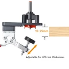 【Durable 35mm Hinge Jig】35mm hinge hole installation, the main material is aluminum alloy + spray, the drill is alloy steel, the thickness of the board is 1.5-2.5cm, with adjustable hole margin of 3-7mm 【Double Clip】Double clamping fixed, increase stability, the drilling sleeve with bearing drilling sleeve, to solve the stuck situation (when the product is in use or idle, it is recommended to add lubricating oil on the bearing, to reduce tool wear and rust) 【Installation Method】Install a 35 mm hole opener, adjust the drilling depth to 10-15 mm, and then lock the limit ring. Adjust the fixed size of the black pressing block of the quick clamp; The tool can adjust the size of the fixed plate 15-25mm (The instructions are also detailed)) 【Product Features】The drilling depth of the product can be adjusted by 10-15mm; Product margins can also be adjusted by 3-7mm (Note: The screw hole position of the hinge will vary with the hinge. It is recommended that the customer punch the 35mm hole directly against the screw hole position of the hinge.) 【Package Include】1 x Hinge drilling locator; 1 x 35 mm hole saw (with stop ring); 1 x Wrenches; 2 x 2.5 mm drill; 1 x Allen key