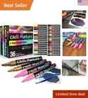 36 Chalk Markers Double Pack of Both Fine & Reversible Medium Tip Liquid Chalk Pens with Labels & Tip Tweezers Wet Erase Menu Boards, Windows, Mirrors, Non-Porous Chalkboards, Metal VARIETY PACK - our modern colors help bring new life to your boards and crafts! This set is filled with our most popular Colors! 36 PEN DOUBLE PACK - Combined set of BOTH Medium and Extra Fine Tips! BONUS LABELS & TWEEZERS - Includes 52 Stick-On chalkboard labels and a pair of tip tweezers for easy tip reversal! ERASABLE on NON-POROUS SURFACES - Perfect for use on Non-porous chalkboards, menu boards, bistro boards, light boards, whiteboards, glass, metal, plastic, and more! Note, some chalkboards may not be suitable. We recommend testing on a small area first. These markers should not be used on chalk painted surfaces. Great for Bistro Boards, Menu Boards, Glass, Windows, White Boards, Classrooms, Mirrors, Non-Porous Chalk Boards, Plastic, Metal, and More! CLEAR MARKER BARRELS - Unlike other products, our chalk marker barrels are transparent so you can see whether the ink has been shaken and mixed well... and how much ink you have remaining! EASY CLEANUP - These liquid chalk markers can be erased and cleaned easily with a damp cloth. Allow the ink to dry before erasing. We recommend soft or screen cloths to avoid scratching your board or surface. 's World of Colors - Collect Them All, Starting with This Special Combo Pack!