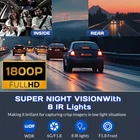 ✔【 360 Degree View 4 Channel Dash Cam 】: 4 channels car dash cam, the ultra-wide-angle lens allows 170° field of view, it can monitor the front, rear, and interior of your vehicle while providing audio, ensuring Degree View full protection. Video recording modes 1080P are available. 4 Channel Videos are displayed on the IPS screen giving you live time video feedback of your car. ✔【 4 Channel Dash Cam for All Round Protection 】:The dash cam with a 170°wide-angle front camera and a 170°in-car camera, as well as a 120°rear camera. The dash cam captures footage from all angles, providing thorough coverage of the vehicle’s surroundings. ✔【 G-Sensor Dashcams and Loop Recording 】:Then the dash cam detects a collision or bump happens, the sensor will auto-lock the footage as evidence. The Loop recording function can overwrite the oldest unprotected files when the TF card is about full. 3.0'' IPS screen 1080p car camera with 32GB SD card, can work infinitely with a loop recording function. ✔【 Superior Night Vision with 8 IR Lamp 】:The left and right camera both has 4 IR lamps. Equipped with F1.8 aperture and Upgraded sensor, dash cam can ensure super clear image at night. Even it’s totally dark, it will show the image Protect your car at any time. 4 videos will display on the screen at the same time, providing the whole views around the car. ✔【 Car Cameras 24 Hours Parking Mode 】:When you park and turn off your vehicle, the 4 channel dashcam will automatically switch to parking mode, enabling 24-hour surveillance recording, providing 24 hours protection for your car. ✔【 Easy Ins tallation 】: The dashboard camera is very easy to install and use with the help of the reference images in our user manual. The included suction mount is easy to install on your windscreen in seconds. Specifications: Resolution: 1920 * 1080P /30 Frames Display:3.0 inch IPS Screen 16:9 360*640 View angle:170 Degrees Cycle recording: Support Motion Detection Function: Support Date stamp: Support G-sensor: Support Night Vision: Support Parking Detection : Support Memory card: 32GB (Included) Power interface :USB 2.0 Battery:150 MAH Output:HDMI Current frequency:50/60HZ Language:Russian, Japanese, French, Italian, German, , English, Chinese (simplified), Chinese (Traditional), Korean ,Spanish, Portuguese Operation Temp:-20°-+70° Package Included: 1 x 4 Channels Dash Cam 1 x 32G TF Card 1 x Cigarette Port Power Cord 1 x Rear Camera 1 x Mounting bracket 1 x Instruction manual