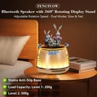 【Bluetooth 5.2 for Stable Wireless Connection】Equipped with Bluetooth 5.2, the bluetooth speaker ensures reliable connectivity up to 10 meters. FENGTUOW speaker pairs quickly with smartphones, tablets, and PCs (Bluetooth name: “MoodTune”). The twin speaker setup delivers immersive sound with deep bass and crisp highs—even at high volume—ideal for casual listening, parties, or cinematic experiences. 【360° Rotating Platform with Built-In High-Fidelity Speakers】This compact Bluetooth speaker wireless doubles as a rotating display stand—ideal for showcasing jewelry, figures, or other collectibles. The adjustable rotation speed ensures smooth performance, with a recommended load of approx. 200g at speed level 1 and 500g at level 2. Dual speakers deliver clear stereo sound, making outdoor speaker perfect for both personal collections and retail environments. 【7-Color RGB Light Effects for Dynamic Presentations】The integrated base lighting offers 7 vivid color options and a smooth gradient mode. Whether you prefer a fixed hue or a constantly shifting display, this party speakers Bluetooth wireless setup synchronizes lighting with rotation to highlight your products from all angles. Combined with the built-in stereo speaker, it creates an eye-catching visual and auditory experience—perfect for boosting display aesthetics and grabbing attention in any setting. 【Long Battery Life with Fast USB-C Charging】Bluetooth speakers for house is powered by a 2600mAh rechargeable battery, this speaker and display combo runs for 8–10 hours on a full charge. Charging via USB-C takes only 2.5 to 3 hours. Its compact form (161mm × 161mm × 127mm) makes portable speaker Bluetooth suitable for both indoor and outdoor use, offering great portability without compromising functionality. 【[Energy-Saving Features and Easy Button Operation]】Designed for convenience, Bluetooth activates automatically at power-on and disables after 5 minutes of inactivity to save power—simply press the button again to reconnect. The outdoor speakers bluetooth waterproof patio also shuts down after 15 minutes of no operation. With clearly labeled physical buttons and built-in smart power-saving, travel speaker is an ideal multifunctional speaker stand for decoration, events, or display setups. Product Description FENGTUOW WIRELESS PORTABLE 360° ROTATING BLUETOOTH 5.2 SPEAKER FENGTUOW Wireless Portable 360° Rotating Bluetooth Speaker Many of us these days have masses of music stored on our phones and tablets, and that’s great for use with headphones, but so good if you want to listen whilst sitting in the garden, or on a picnic or just relaxing at home. That’s where bluetooth speakers are really ideal. The XR-YX003 is a budget Bluetooth speaker designed for outdoor use. It comes with a detailed instruction manual, USB C lead and an aux lead. The battery life is approximately 6-8 hours. The charging and aux ports are tucked in beneath a rubber flap which stops water ingress. Whether you're camping, hiking, or trekking, FENGTUOW speaker's solid design allows it to fit easily into your backpack and is easy to carry. Add an extra touch of musical excitement to your journey Crank it up wtih True Wireless Stereo True Wireless Stereo pairing allows you to pair FENGTUOW XR-YX003 speakers together for 8W surround stereo sound. You can take it to the living room, garden, or courtyard and anywhere you want to enjoy a louder and more shocking movie theater or party atmosphere anytime, anywhere.