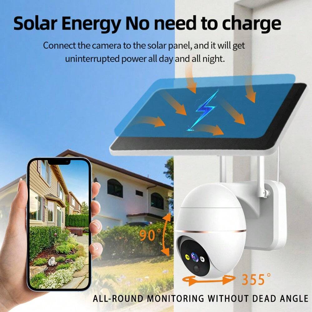 Solar Security Cameras Wireless Outdoor, 360° View Pan/Tilt WiFi Security Camera