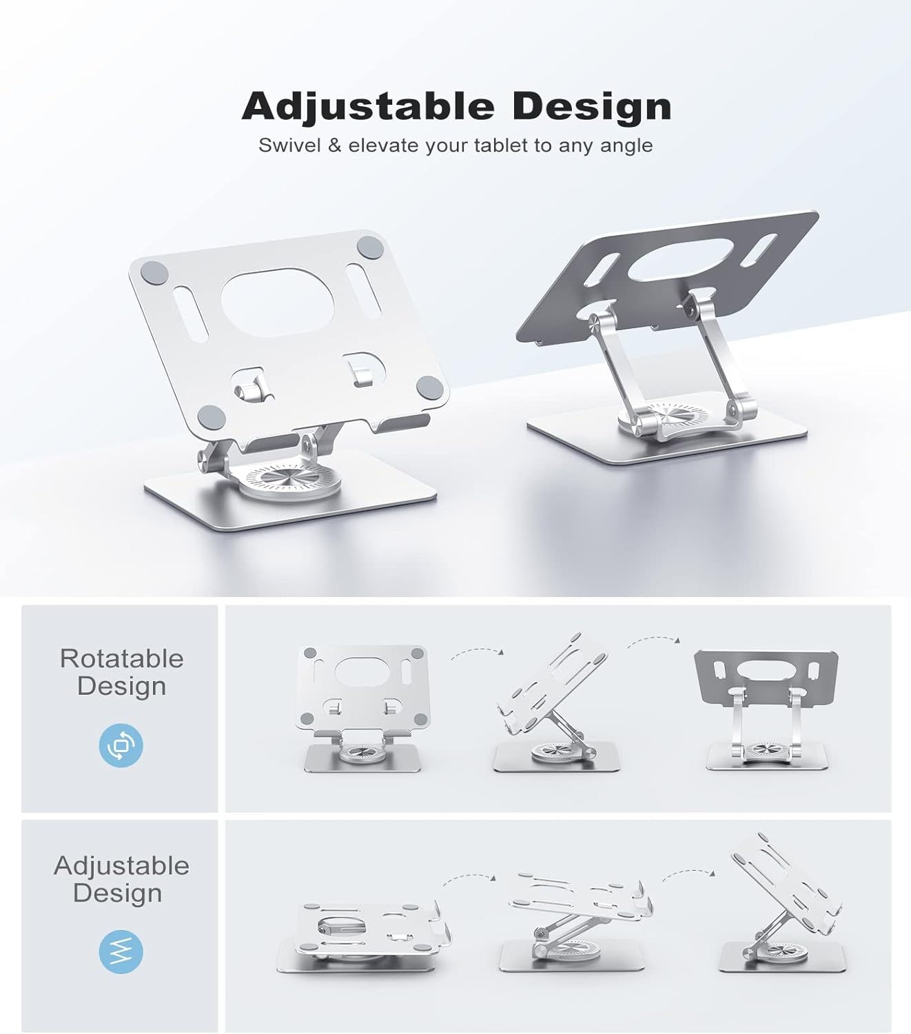 Store New Arrivals Add to Favorite View Feedback Contact Tablet Stand, Swivel Tablet Stand with 360 Rotating Base, Adjustable Tablet Holder for Drawing, Compatible with Ipad Pro/Air/Mini and More (Silver) Description Item model number ST02 Color Silver Product Dimensions 5.91 x 5.04 x 1.18 inches Country of Origin China Compatible Devices Mobile phone tablet under 12.9 inches Item Weight 9.1 ounces Form Factor Case Compatible Phone Models Mobile phone tablet under 12.9 inches Product Description The video showcases the product in use. The video guides you through product setup. The video compares multiple products. The video shows the product being unpacked. 360-Degree Rotation and Free Height Adjustment ABOUT US We offer the best prices around on high quality products. Our E-store includes media such as books, movies, music and games while offering electronics, toys, sporting apparel, clothing, tools, general home, garden items and more. SHIPPING We are always working hard to ensure your package arrives as soon as possible. Please understand that some factors like weather, high postal traffic, and the performance of shipping companies are outside of our control. We offer free shipping to the lower 48 states and ship within 2 business days of payment, usually sooner. We do not accept P.O. Boxes. Please provide a physical address. For shipping outside of the continental USA, we only use eBay's Global Shipping Program.The item is shipped to KY and then sent to the rest of the world. International customers are responsible for all duties and taxes. Continue to check out in order to calculate costs for shipping the item to your country. Messages regarding eBay's Global Shipping Program MUST be directed at eBay EXCLUSIVELY. RETURNS We offer a 30-Day Return Policy on items which you are not completely satisfied with. You have the option for a full-refund or an exchange of the item. No returns are available on items shipped outside of the USA. PAYMENT We accept PayPal. CONTACT US This page content is yet to come Please ad us to your favorite seller and visit again later Thank You CUSTOMER SATISFACTION We try our very best to make sure every customer is completely satisfied. If there's a problem, message us! We're happy to help. WE ACCEPT Copyright © 2021 AutoDS. | All Rights Reserved