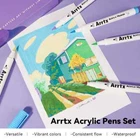Arrtx 36D Color Acrylic Paint Pens Set 36 Vibrant Colors Acrylic Paint Pens - This set contains one color from 30A (35), contains 10 colors from 30B (00/03/17/18/28/38/53/56/61/98), extra increasing 25 new colors added. This marker set provides more new color shades for creativity. Please note: When you open the package for the first time, the order of placing the acrylic markers is the same as the order of the color card stickers, just stick them in order. Quick Dry and Waterproof - The highly pigmented paint is high covering, water-resistant, and abrasion proof allowing the application to any surface. Arrtx acrylic paint pens are water-based ink. These paint markers flow without flooding or jamming, it's permanent when dry. Note: Please tighten the cap and put pens horizontally if you don't use them. Work Well on Diverse Surface-Arrtx acrylic markers set provides water-based smooth ink and excellent coverage for a variety of surfaces, works for paper, cardstock, metal, rock painting, wood, plastic, canvas, fabric, stone, Easter eggs, easter decoration, metal, Christmas ornament, Halloween pumpkin painting, calligraphy, scrapbook, brush lettering, Christmas card, birthday gifts, greeting card, or any DIY crafts projects and more. Let's express imagination! Easy to Apply, No Pressing Down,No Shaking - With new design, these pens are very easy to apply and no need to shake and press for tips while using, you only need to open the cap to use pen.Round pen body made it comfortable to grip. Safe and Non-toxic - Arrtx drawing markers set adopts water-based environmental protection pigment ink, which is non-toxic, tasteless, waterproof, and high temperature resistant. With high-quality certificated ink makes these painting pens safe and suitable for both kids and adults for all kinds of DIY paintings. Ideal Gift - Arrtx markers are packaged in a unique two-tier design box to keep your pen clean and well organized. Non-Toxic & Safe, good gift for kids, students, artists, and adults at Christmas, Halloween, Easter Day, Thanksgiving, mothers day, and any other occasions.