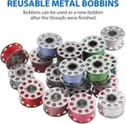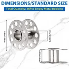 36PCS Metal Sewing Machine Bobbins Universal Sewing Machine Bobbins,Compatible & About this item ๐ REUSABLE METAL BOBBINS: 36PCS metal bobbins are polished so that the smooth surface and edges will not catch the threads. You can twine these metal spools with different colors threads and this bobbin can be used as a new bobbin after the threads were finished ๐ STANDARD SIZE: Each metal bobbinโs outer diameter is 0.8 inches, inner diameter is 0.28 inches, outer width is 0.39 inches, inner width is 0.35 inches. Please check the dimensions before you order ๐ FIT MOST SEWING MACHINES: Metal bobbin size: Size A, Class 15, can be applied for a variety of sewing machines like Bro-ther, Baby-lock, Jano-me, Ken-more, Sin-ger etc. Great for anyone just starting out with an embroidery machine or a sewing machine ๐ KEEP THE BOBBINS ORGANIZED: Comes with a clear transparent bobbin case with each bobbin in a separate spot that is very organized. Made of solid metal, which are sturdy for your normal daily using ๐ GREAT TOOLS FOR DIY LOVER: It is an essential accessories for your sewing machine for handmade and patch the clothes. It's the best choice for you preparing surprise for your wife, mom, sister or friends