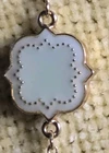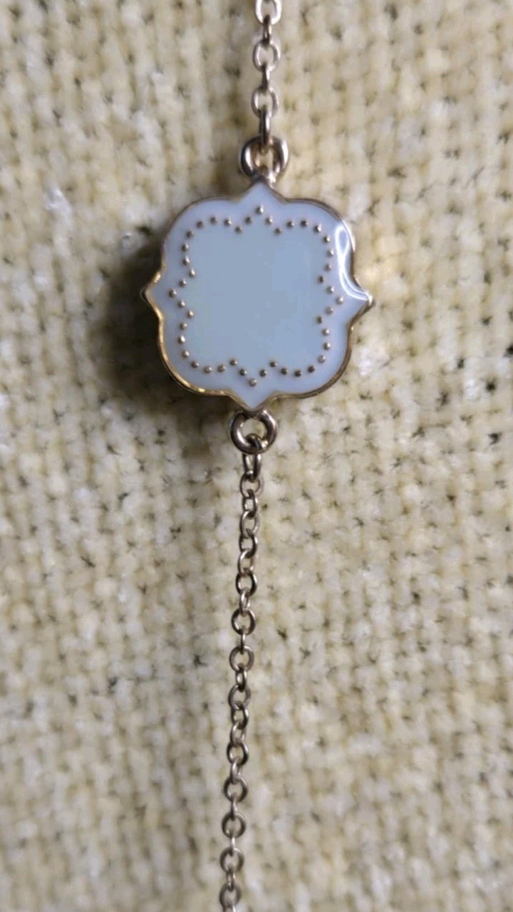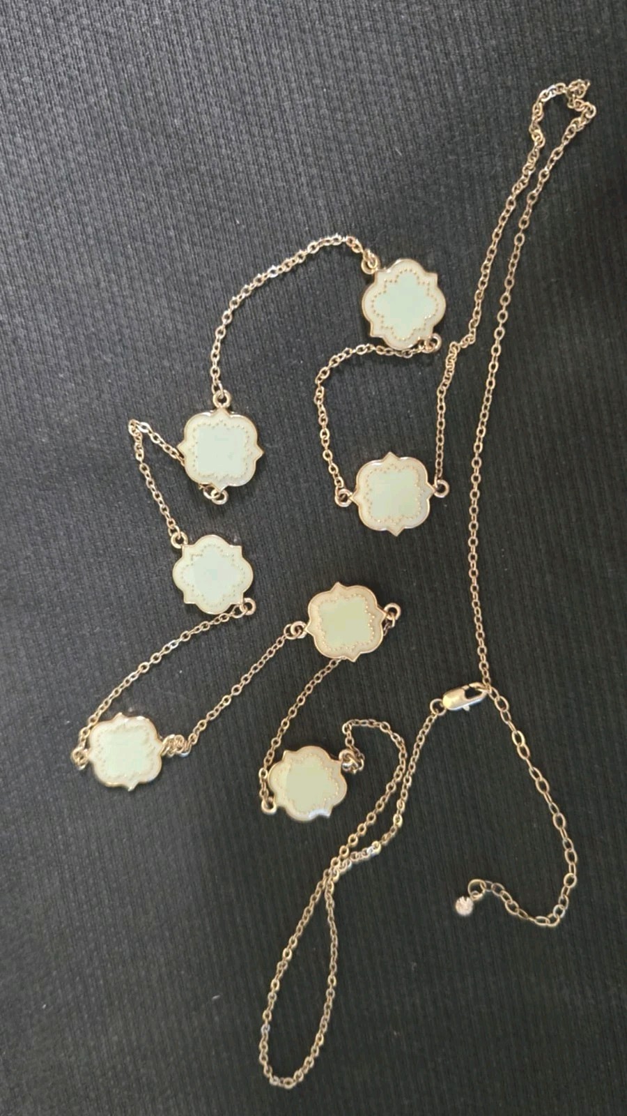 Necklace 36in long Light Green clover shaped charms evenly placed w Gold chain EUC See pics