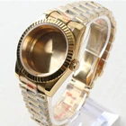 Description: Case material: Solid 316L stainless steel Case diameter:36mm/39mm without crown Thickness: 12mm Watch band: president strap Fit dial: 28.5mm -29mm dial Glass: Sapphire glass Strap width: 20mm Case Color:Silver Gold Rose Black Fit movement: seiko nh35 nh34 nh36 nh38 nh70 nh72 (Need solid case back contact us) Packaging includes: 1pcs watch case 1set tools 1Protective box 1silicone covers