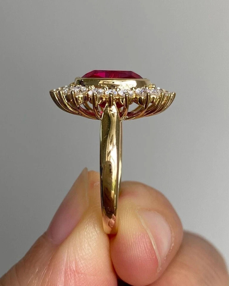 3.75 Ct Oval Natural Ruby & Diamond Wedding Ring 14K Yellow Gold