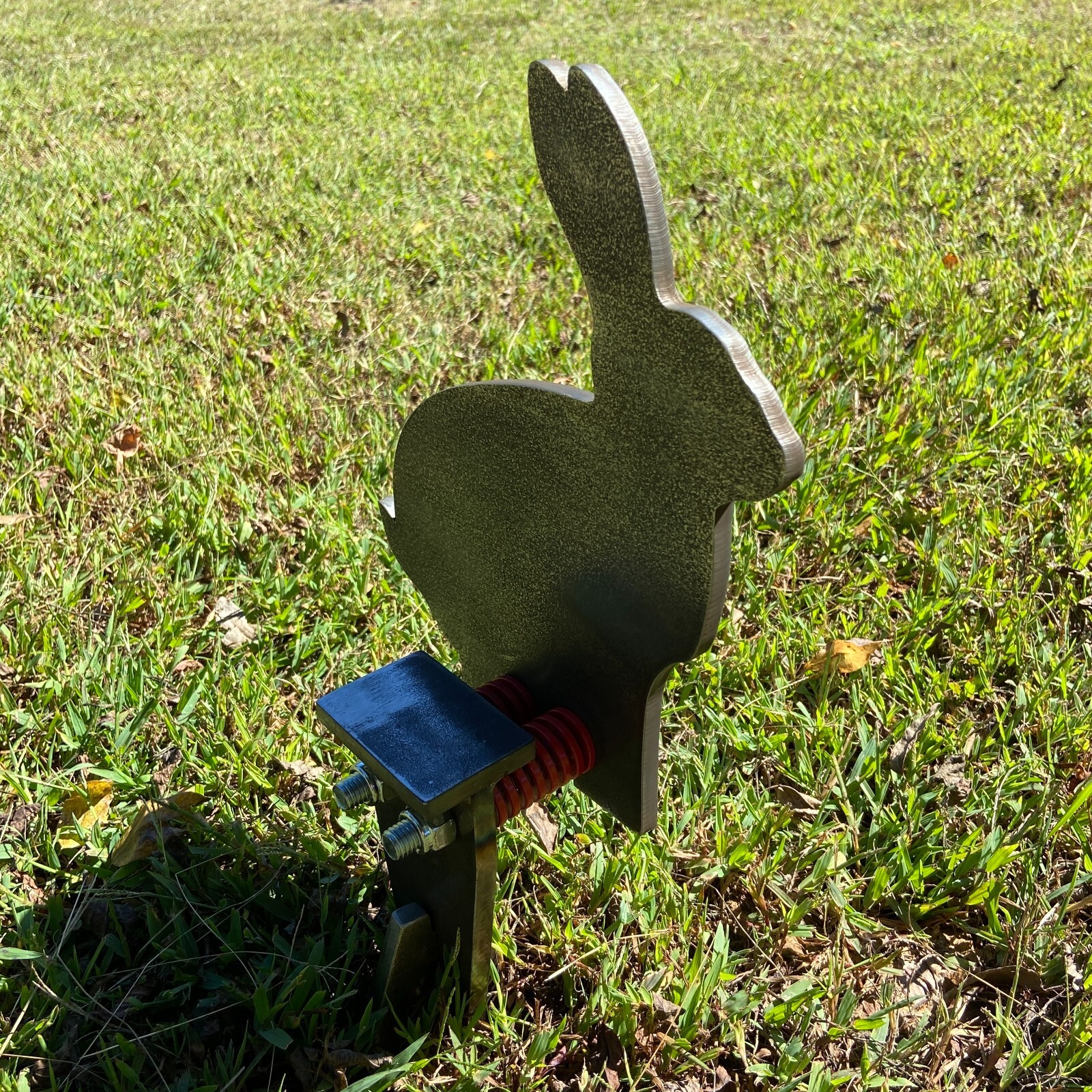 Manufactured by MAGNUM TARGET Visit our eBay for the Best Prices and Widest Selection! Set includes (1) 9.5” x 9.75” x 3/8” AR500 Rabbit Popper Body (1) 3/8” AR500 Slotted Stake Stand (1) 3/8" AR500 V-Shaped Stake Stand Support (2) Carriage Bolts (2) Compression Springs (2) Lock Nuts Target comes disassembled. 3/4" Wrench is required for assembly. This simple, robust design is quick and easy to set up. Within a few minutes you're ready for multiple hours of fun/training at the range. Using a hammer, the flat 3/8" AR500 stake top allows for easy installation into the ground. Target comes disassembled. Compression springs maintain consistent bullet deflection downward away from the shooter and others. Great for short and long distance shooting. Target and stake stand come finished and not painted These AR500 steel targets are great for most pistol and rifle calibers, including 9mm, 45ACP, .223, 30-06 & 308 as well as most other high powered rifle calibers. Three eighths inch thick AR500 steel targets are rated to 3200 fps at 100 yards. This target and stand are manufactured from new high quality 3/8 inch thick AR500 steel plate made in the USA. These products are precision cut with a CNC plasma cutter and submersion water cooled during the cutting process ensuring the longest life. Reversible steel target face doubles the life of the shooting target. Shipping Information All orders ship next business day. Warning - Shooter and spectators must always wear proper eye and hearing protection. - Recommended minimum distances from steel targets to shooter are 15 yards for pistols and 100 yards for rifles. - If using non-frangible ammunition use handgun ammunition with a maximum velocity of 1500 feet per second. Rifle ammunition muzzle velocity should not exceed 3,000 feet per second. - No shotgun slugs, steel birdshot and buckshot ammunition can be shot at steel targets. - Never shoot hardened, steel core or armor piercing ammunition at any steel target. Disclaimer Buyer assumes all responsibility for the use and misuse of the targets purchased.