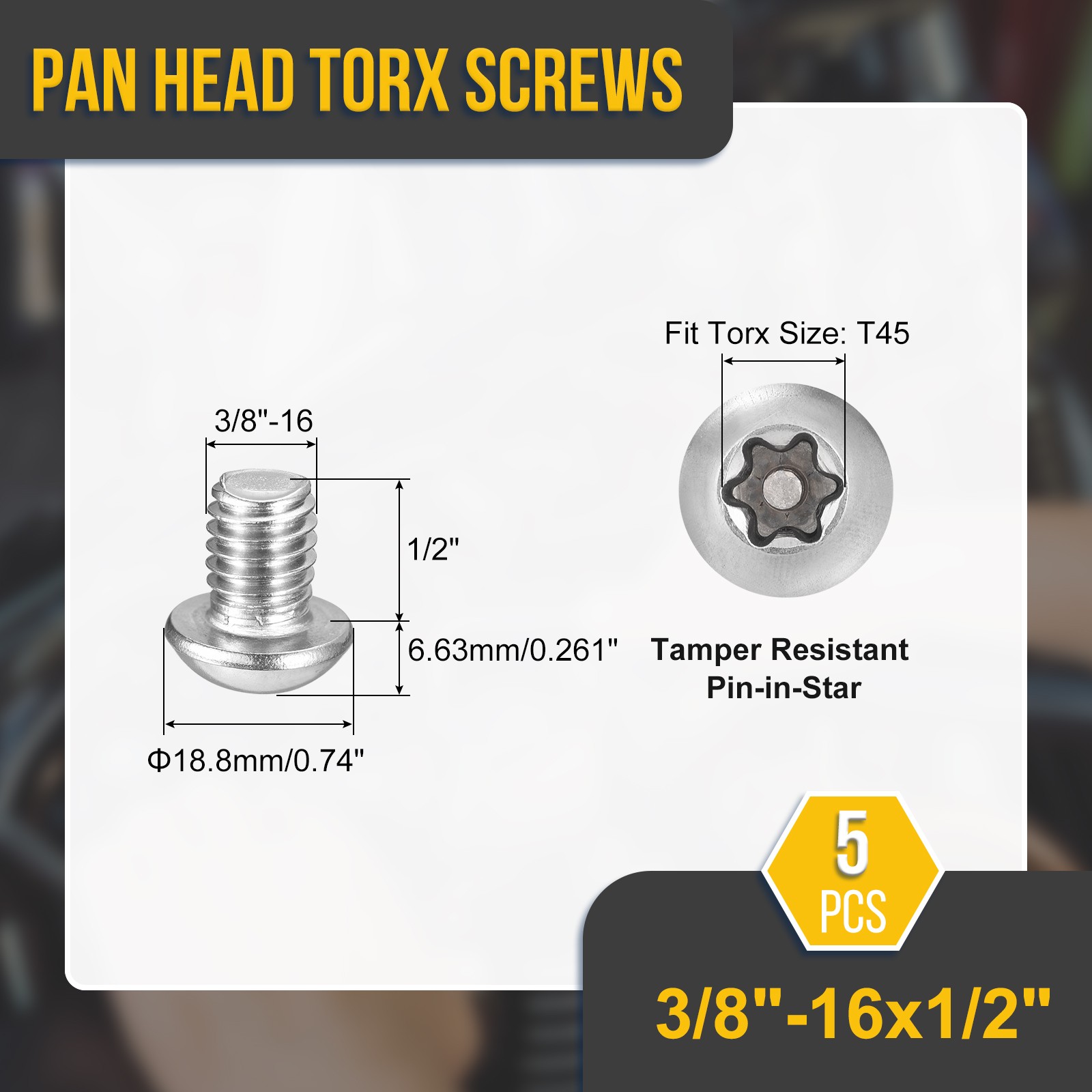 Document Product Details:Product Name: Anti Theft License Plate Button Torx Head Machine Security ScrewsThread Diameter: 3/8"-16(Thread Dia x Pitch)Screw Length:1/2"Head Size: 18.8x6.63mm/0.74x0.261inch(Head Dia.*H)Fit Torx Size: T45Color: Silver ToneMaterial: 304 Stainless steelPackage Content: 5Pack x Pan Head Torx Screws Security Screws Bolts[DESIGN] - Fasteners tamper resistant Torx screws efficiently guard against unauthorized removal and access. Their innovative design, coupled with a sturdy construction, significantly enhances the level of theft prevention.[Feature]: License plate screws Button Torx head, designed for security and anti-theft purposes, are suitable for use in various extreme environments. They can be applied to furniture assemblies, such as beds, tables, cabinets, and chairs, as well as woodworking projects involving the joining of wood, boards, workbenches, and kitchen countertops. Additionally, these screws are for office appliances, 3D printing, bicycles, and, of course, securing license plates. [Application]: Torx pan head screws are utilized for assembling and connecting various components, such as screws, nuts, and bolts. By connecting furniture frames, supports, and structures. Furthermore, furniture screw fasteners aid in adjusting the positions of components to ensure precise alignment during the installation process.[Notice]: Button Torx Head Machine Security Anti Theft License Plate Screws Note - Before making a purchase, please confirm the correct size needed. Using a caliper for measurement is recommended, and try to avoid using a ruler or tape measure. 3/8"x1/2" Pan Head Torx Security Screws - 5Pack - Stainless Steel - Silver Product Details: Product Name: Anti Theft License Plate Button Torx Head Machine Security Screws Thread Diameter: 3/8"-16(Thread Dia x Pitch) Screw Length:1/2" Head Size: 18.8x6.63mm/0.74x0.261inch(Head Dia.*H) Fit Torx Size: T45 Color: Silver Tone Material: 304 Stainless steel Package Content: 5Pack x Pan Head Torx Screws Security Screws Bolts [DESIGN] - Fasteners tamper resistant Torx screws efficiently guard against unauthorized removal and access. Their innovative design, coupled with a sturdy construction, significantly enhances the level of theft prevention.[Feature]: License plate screws Button Torx head, designed for security and anti-theft purposes, are suitable for use in various extreme environments. They can be applied to furniture assemblies, such as beds, tables, cabinets, and chairs, as well as woodworking projects involving the joining of wood, boards, workbenches, and kitchen countertops. Additionally, these screws are for office appliances, 3D printing, bicycles, and, of course, securing license plates. [Application]: Torx pan head screws are utilized for assembling and connecting various components, such as screws, nuts, and bolts. By connecting furniture frames, supports, and structures. Furthermore, furniture screw fasteners aid in adjusting the positions of components to ensure precise alignment during the installation process. [Notice]: Button Torx Head Machine Security Anti Theft License Plate Screws Note - Before making a purchase, please confirm the correct size needed. Using a caliper for measurement is recommended, and try to avoid using a ruler or tape measure. Hot Item Payment 1.We accept eBay payment . 2.Payment must be received within 7 business days of auction closing. Shipping 1.We ship to your eBay or Paypal address. Please make sure your eBay and Paypal address is correct before you pay. 2.Items will be shipped within 1-3 business day when we received payment. 3.Delivery time depends on destination and other factors. Description Policy 3/8"x1/2" Pan Head Torx Security Screws - 5Pack - Stainless Steel - Silver Product Details: Product Name: Anti Theft License Plate Button Torx Head Machine Security Screws Thread Diameter: 3/8"-16(Thread Dia x Pitch) Screw Length:1/2" Head Size: 18.8x6.63mm/0.74x0.261inch(Head Dia.*H) Fit Torx Size: T45 Color: Silver Tone Material: 304 Stainless steel Package Content: 5Pack x Pan Head Torx Screws Security Screws Bolts [DESIGN] - Fasteners tamper resistant Torx screws efficiently guard against unauthorized removal and access. Their innovative design, coupled with a sturdy construction, significantly enhances the level of theft prevention.[Feature]: License plate screws Button Torx head, designed for security and anti-theft purposes, are suitable for use in various extreme environments. They can be applied to furniture assemblies, such as beds, tables, cabinets, and chairs, as well as woodworking projects involving the joining of wood, boards, workbenches, and kitchen countertops. Additionally, these screws are for office appliances, 3D printing, bicycles, and, of course, securing license plates. [Application]: Torx pan head screws are utilized for assembling and connecting various components, such as screws, nuts, and bolts. By connecting furniture frames, supports, and structures. Furthermore, furniture screw fasteners aid in adjusting the positions of components to ensure precise alignment during the installation process. [Notice]: Button Torx Head Machine Security Anti Theft License Plate Screws Note - Before making a purchase, please confirm the correct size needed. Using a caliper for measurement is recommended, and try to avoid using a ruler or tape measure. Hot Item Payment 1.We accept eBay payment . 2.Payment must be received within 7 business days of auction closing. Shipping 1.We ship to your eBay or Paypal address. Please make sure your eBay and Paypal address is correct before you pay. 2.Items will be shipped within 1-3 business day when we received payment. 3.Delivery time depends on destination and other factors.