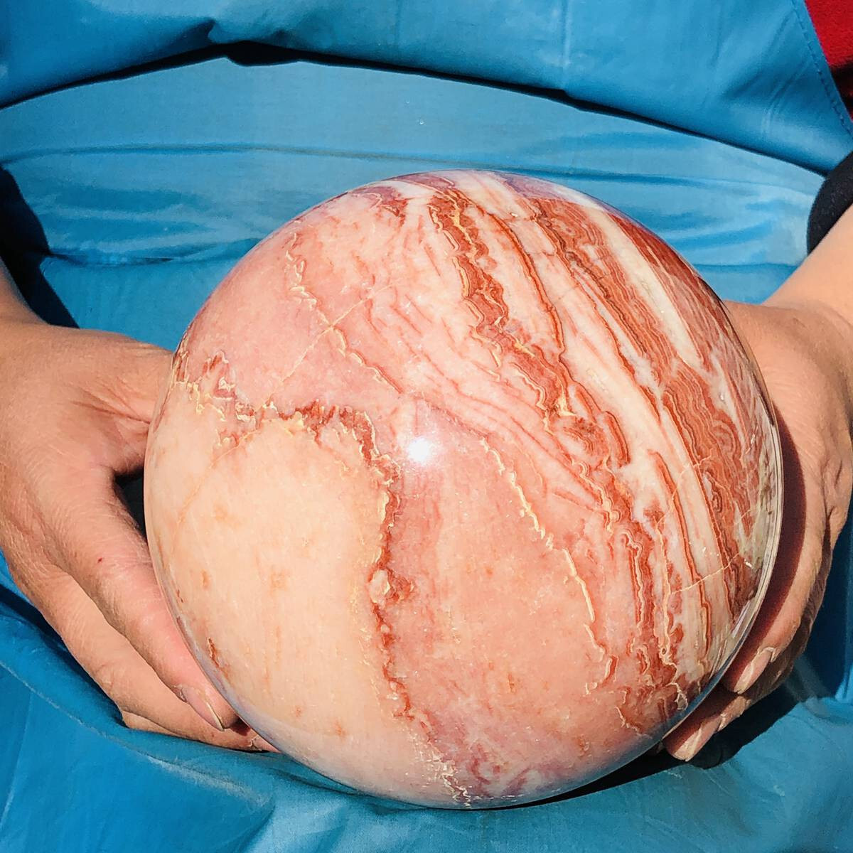 Natural Red Stripe Pork Stone Crystal Quartz Sphere for Reiki Healing 3340g