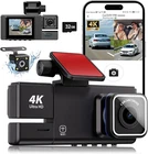 【Dash Cam】3 Channel Dash Cam can record videos in front UHD 4K (3840*2160P), and rear FHD 1080P (1920*1080P) resolution, clearly capturing license plates and road signs. With a 170° front view, 120° cabin view, and 150° rear view, the triple dashcam ensures you never miss a moment and stay protected with 360° full-protection.Note: Do not plug or unplug the rear camera during use, disconnect the dashcam's power first before operating. 【Car Camera】Protect your vehicle after using an additional hardwire kit. Accidents can be captured while parked, and front, rear, and interior cameras provide comprehensive coverage. Secure your vehicle throughout the day. Motion detection or collision detection parking modes allow the camera to automatically start recording when triggered by a motion or collision event. (Note: 24-hour parking monitoring hardwire kit is required to be purchased separately) 【3 Channel WiFi Dash Cam】With a G-sensor, 4 IR lights, and WDR technology, better night vision is provided by the 4K dash camera. Uses f/2.0 wide aperture with a total of 6 layers of optical lens technology, enabling the car camera to show good color accuracy and clearly capture important details day or night. 【Dash Cam Front and Rear】Enjoy fast video download speeds of up to 8MB/s, and the built-in 5GHz WiFi gives you fast access, enabling instant access to recorded content and driving directions on your smartphone. Support simultaneous video playback in front of/inside/behind the car and easily share your travel experience with family, friends and social media with a single click. 【Dash camera for Cars】Equipped with a detachable 32GB card, it offers plenty of video storage space, ensuring you capture every important moment on the road. (Note: SD cards need to be formatted before first use.) The loop recording function automatically overwrites the oldest files when storage is full, and the G-sensor automatically detects collisions and locks the recording, protecting critical evidence from being overwritten. 3 Channel WiFi Dash Camera for Cars