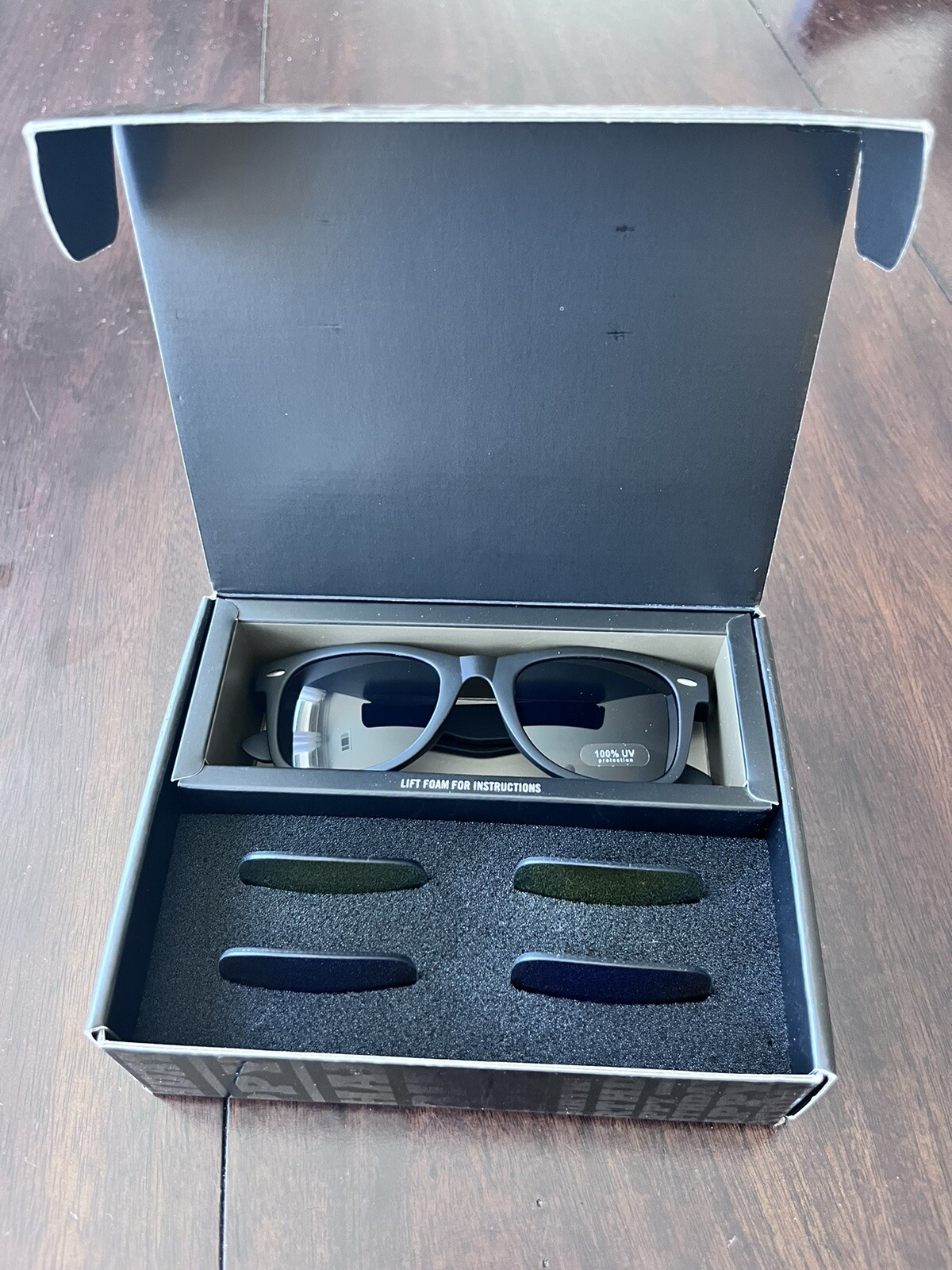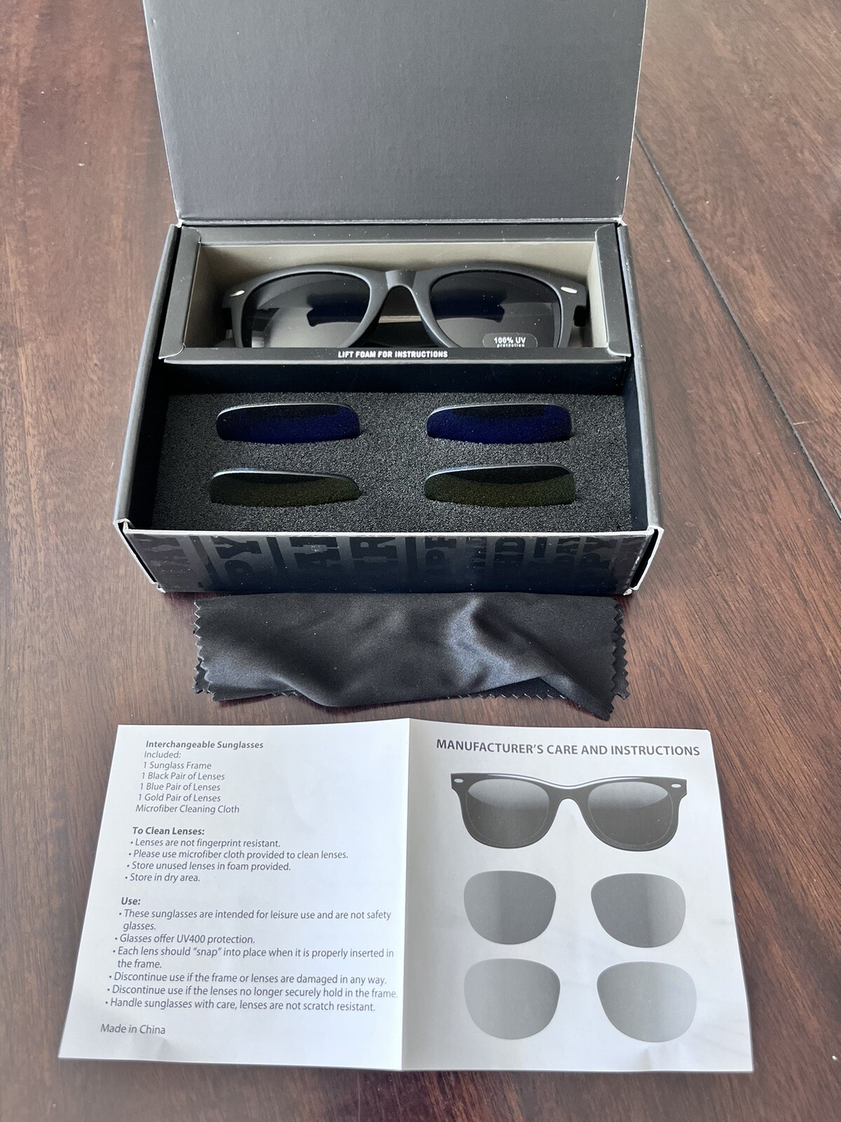 Elevate your style with these sunglasses from Box. The black plastic frame is perfect for any occasion and the multicolor lenses add a pop of color to your outfit. These unisex sunglasses are perfect for adults and come with a happy birthday gift. Interchange the lenses to match your mood and the weather. These sunglasses are a must-have accessory for any fashion-forward individual.