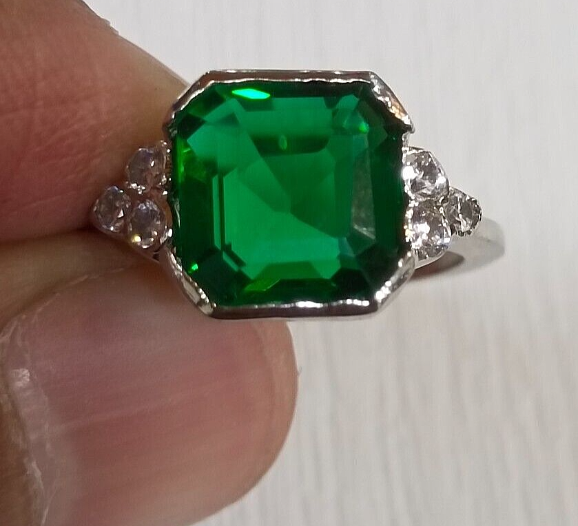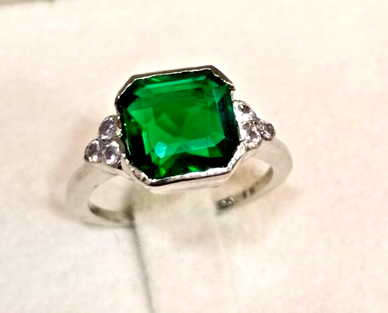 Theme: Beauty Base Metal: Sterling Silver Metal Purity: 925 Sterling silver Type: Ring Number of Gemstones: NA Certification: NA Cut: Excellent Number of Diamonds: NA Band Width: NA Gemstone Clarity Grade: Eye Clean Shape: Square Brand: pateljewellers Main Stone Shape: Square Metal: White Gold Plated Features: Nickel-Free Color: Silver Colored Diamond Intensity: Fancy Light Sizable: Yes Setting Style: Prong Ring Size: All Size Available Main Stone Color: Green Diamond Clarity Grade: Very, Very Slightly Included (VVS1) Main Stone: Simulated Diamond Cut Grade: Excellent Main Stone Treatment: Not Enhanced Secondary Stone: Simulated Diamond Occasion: Anniversary, Birthday, Engagement, Wedding Material: Silver Style: Eternity Country/Region of Manufacture: India Stone Creation: Simulated Main Stone Creation: Simulated Country of Origin: India