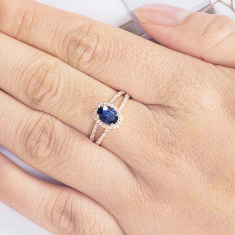 $ 52.82.55 Ct Oval Cut Blue Sapphire Wedding Ring 14k Solid Yellow Gold
