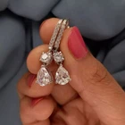 $ 13.13Black Gold Plated Cubic Zirconia Flower Long Drop Earrings Women Costume Jewelry