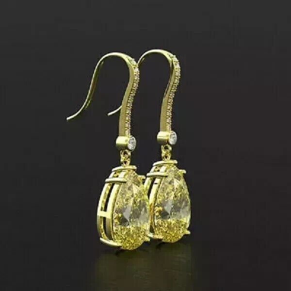 3Ct Pear Cut Yellow Citrine Simulated Drop Earrings in 14K Gold Plated