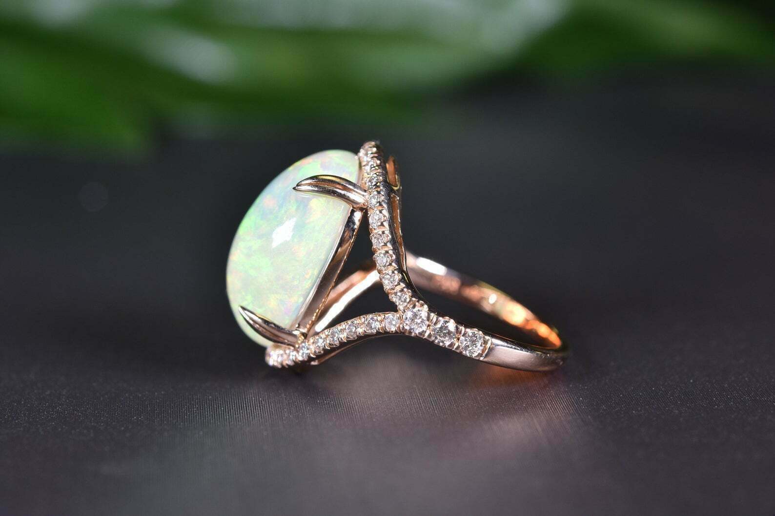 3Ct Simulated Opal Diamond Accent Engagement Ring in 14K Yellow Gold Plated Silver