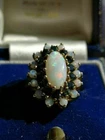 3Ct Simulated Oval&Round Fire Opal & Sapphire 14K Yellow Gold Plated Silver Ring