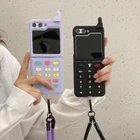 3D Cute Antenna Game Boy Classic Retro Phone Case For Samsung Galaxy Z Flip 6 5 Luxury Hard Plastic Frame Silicone Cover For Samsung Z Flip 3 4 5G With Hand Strap Lanyard