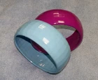 Bangle bracelets Sky Blue & Purple 3D PRINTED Chunky Cuff lightweight minimalistic bracelet for girls 2 pieces 2x Bracelets 3D PRINTED, made from ABS plastic with 3D printer FDM technology. Bracelets have glossy finish. Dimensions: Inner diameter approx: 65mm. Width approx: 29mm. Outer diameter approx: 80mm. L_09
