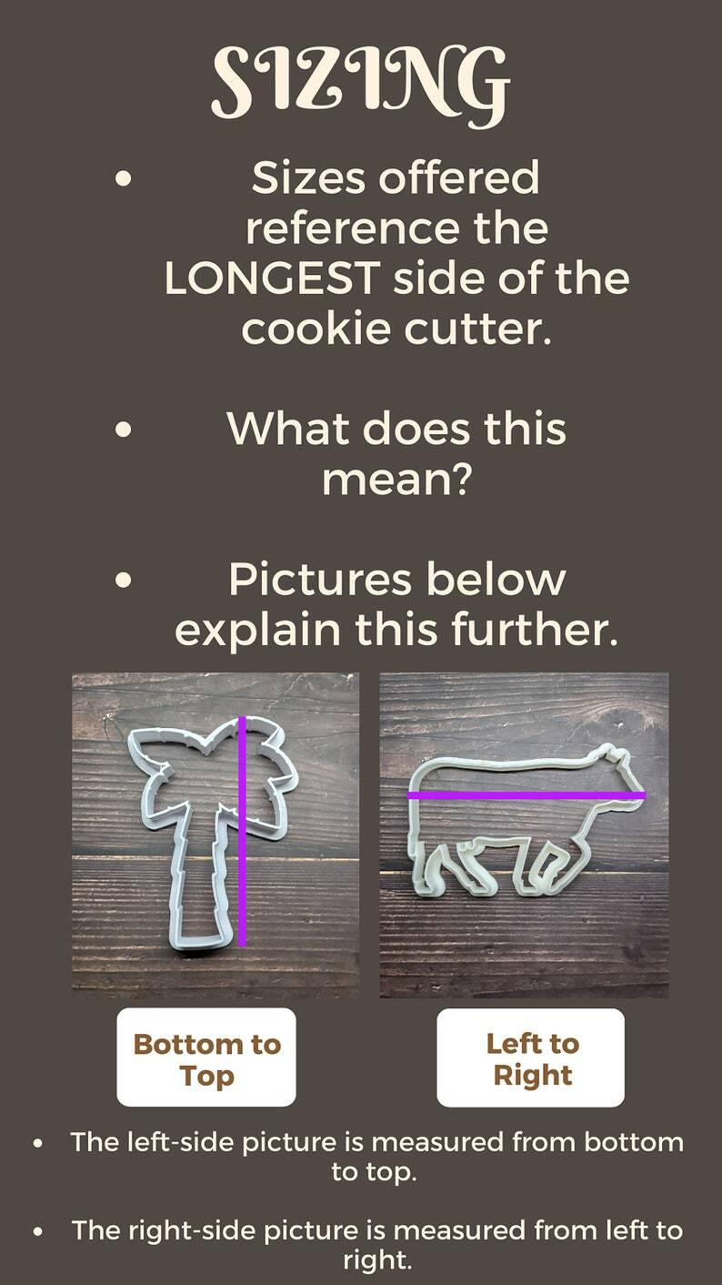 - Sunglasses Shape Cookie Cutter - MATERIAL: All cookie cutters are made with food-safe PLA on our 3D printers. CLEANING: NOT DISHWASHER SAFE These cutters should be hand washed with warm soapy water. Avoid hot water or prolonged soaking in water to prevent damage. SIZE: Sizes refer to the longest length of the cookie cutter. Images explain this further. **Image shown may be mirrored/reversed of cookie cutter orientation/direction. Please refer to the listing images for further explanation. COLOR: Most cutters are made in shades of white. When stock is low, cutters may be made with different colors. SHIPPING: All cutters are shipped via USPS Ground Advantage . Larger orders may be shipped Priority USPS Mail. PREPARATION: We recommend using very cold dough when stamping/cutting cookie shapes. This will help the cookie keep its shape during baking. TIPS & TRICKS: We recommend coating your cookie cutter with flour in between each cookie stamp/cutting. This will help the dough separate cleanly from the cutter.