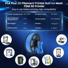 SUNLU 100% Neatly Wound PLA+ Filament The SUNLU R&D team has developed cutting-edge technology to produce 100% neatly wound PLA+ filament, an achievement unmatched by other brands. This advanced winding process ensures no knots or tangles, greatly enhancing printing efficiency and reducing downtime. Advantages of SUNLU PLA+ 3D Filament SUNLU PLA+ is 10 times stronger than standard PLA filament, offering improved durability and brighter colors. It is designed for hassle-free printing, with no clogs, bubbles, tangling, warping, or stringing. Its superior layer adhesion ensures better print quality, making it easy to use for both beginners and professionals alike. 1.75mm Diameter with High Dimensional Accuracy Engineered with precise dimensional accuracy of +/- 0.02mm, SUNLU filament is highly compatible with most 1.75mm FDM 3D printers. Its consistent diameter ensures smooth and reliable feeding for more accurate prints. Spool Specifications Diameter: 8.00 inches Width: 2.50 inches Hub Hole Diameter: 2.20 inches The spool's dimensions are optimized to fit most 3D printers, allowing for easy integration into your setup. Recommended Print Settings Nozzle/Extrusion Temperature: 210°C - 235°C (410°F - 455°F) Bed/Platform Temperature: 55°C - 65°C (131°F - 149°F) These settings help achieve optimal printing performance and quality. Wide Compatibility SUNLU 3D filament is not only compatible with all SUNLU 3D printing products, including FDM 3D printers and filament dryers, but also works seamlessly with a wide range of other FDM 3D printers, such as the popular Ender 3 and Ender 3V2 models. Product Description SUNLU PLA+ 3D Printer Filament - A high-strength, easy-to-use filament, perfect for beginners and professionals seeking high-quality, reliable prints. The video showcases the product in use. The video guides you through product setup. The video compares multiple products. The video shows the product being unpacked.