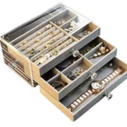 Features: • Three Layer Design :The three-layer design provides ample space to store your jewelry, organized by type and style. • Glass Cover :The glass cover adds a touch of elegance to the box, showcasing your jewelry in a stylish manner. • Carrying Case :The carrying case makes it easy to take your jewelry with you wherever you go, ensuring it stays safe and secure. Specifications: Material: Plastic Color: Grey, Beige, Pink Size: As shown in the picture Package Included: 1 x Jewellery Box Notice: 1. Please allow 2-3% error due to manual measurement. 2. The colors may have different as the difference display, please understand.