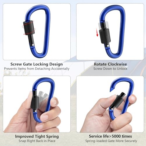 Return Policy Fast Delivery Trusted seller 3" Locking Carabiners | Keychain Carbineers D Ring Key Clip Spring Snap Hook for Multi-Usage | Set of 8 Product Description Premium Locking Carabiner Bulk | This pack includes 8pcs screwgate locking aluminum carabiners and 8pcs 30mm steel rings, perfect for various outdoor activities such as hiking, camping, backpacking, and more indoor accessories Versatile Keychain Clips | Use them as keychain carbineers to keep your keys secure. The locking mechanism provides extra security. Screw locking mechanism is easy to operate, making it simple to attach and detach items quickly Heavy Duty and Durable | These 3 inch carabiners with lock are built to withstand tough conditions. They are heavy duty, waterproof and made from high-quality aluminum, ensuring long-lasting performance Secure Your Gear | Whether you're backpacking or securing gear, these edc carabiners are essential. They can hold your backpack, water bottle, or other equipment with confidence Multipurpose and Lightweight | These everyday-carry carabiners are lightweight, making them easy to take. They serve multiple purposes, from securing gear to organizing your keys or any other accessories Shipping Returns Payment Shipping Shipping is FREE to all addresses other than APO/PO boxes in the lower 48 states. All our stock ships from US-based warehouses. Shipped via USPS or UPS (depending on location and package weight) Unless stated otherwise, all orders will ship within 24-72 hours of your payment being processed. Check our feedback to see the great reviews of FAST shipping we offer. Returns Seller does not accept returns Payment We currently accept payment via eBay managed payments only. Once payment is cleared, we will dispatch your shipment within 1-3 business days. Please refer to the "Shipping" tab for more information regarding shipping speed to your destination.