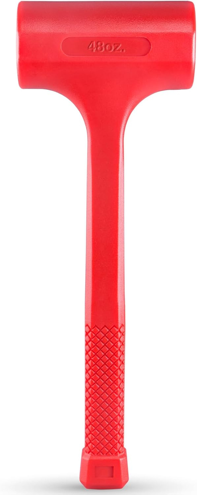 ▲ WIDE APPLICATIONS - Perfect and must-have tools for auto body works, flooring, framing, woodworking, furniture installation, metal forming, gunsmithing and many other jobs ▲ BOUNCE RESISTANT DESIGN - Steel shot filled hammer head eliminates post-strike rebound, and transfers full energy of each blow into work piece to add extra force ▲ PREVENT MARRING AND SPARKING - High impact rubber exterior jacket delivers non-marring and anti-sparking striking, and protects work surfaces from damage and deforming ▲ DURABLE CONSTRUCTION - Heavy duty reinforced all metal interior construction provides durability and withstands daily solid striking to ensure longevity ▲ NON-SLIP GRIP AND HI-VIS COLOR - Diamond textured non-slip handle with checkered grip for more comfortable operation, and hi-visibility neon red color makes it easy to store and locate ▲ LIFETIME WARRANTY - This deadblow hammer is backed by lifetime quality guarantee for worry-free purchase EFFICERE 3-LB (48-OZ) Premium Dead Blow Hammer is an essential striking tool for your home, garage, shop, work sites and cars. It is the perfect choice for a wide range of applications, such as automotive and auto body repairs, wood working, flooring and framing, construction, furniture installation, firearm repairs, material fabrication and leveling, machinery maintenance and a lot more. It fits a variety of your needs no matter you are a home / shop owner, contractor, mechanics technician, machinist, carpenter, gunsmith or a hobbyist. With the special design of small steel shot filled inside the head, these hammers will not bounce back after a solid strike as other common hammers. Controlling this fatiguing rebound conserves the energy of each blow with fully redirecting it to the work piece, and also absorbs most of the shock and reverberation to your arm. Featuring high-impact reinforced plastic vinyl jacket, EFFICERE double faced flat deadblow hammers protect delicate soft work surfaces from damaging and marring, eliminate sparking on steel and iron parts, and reduce the chance of deforming the work piece. Together with the heavy-duty interior core made from a durable all metal construction, our hammers are built to last long and perform well on tough material even in harsh environments.