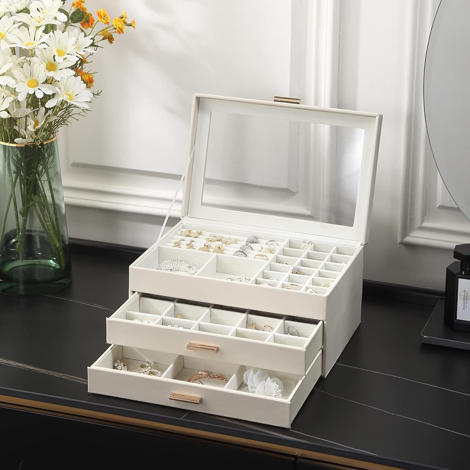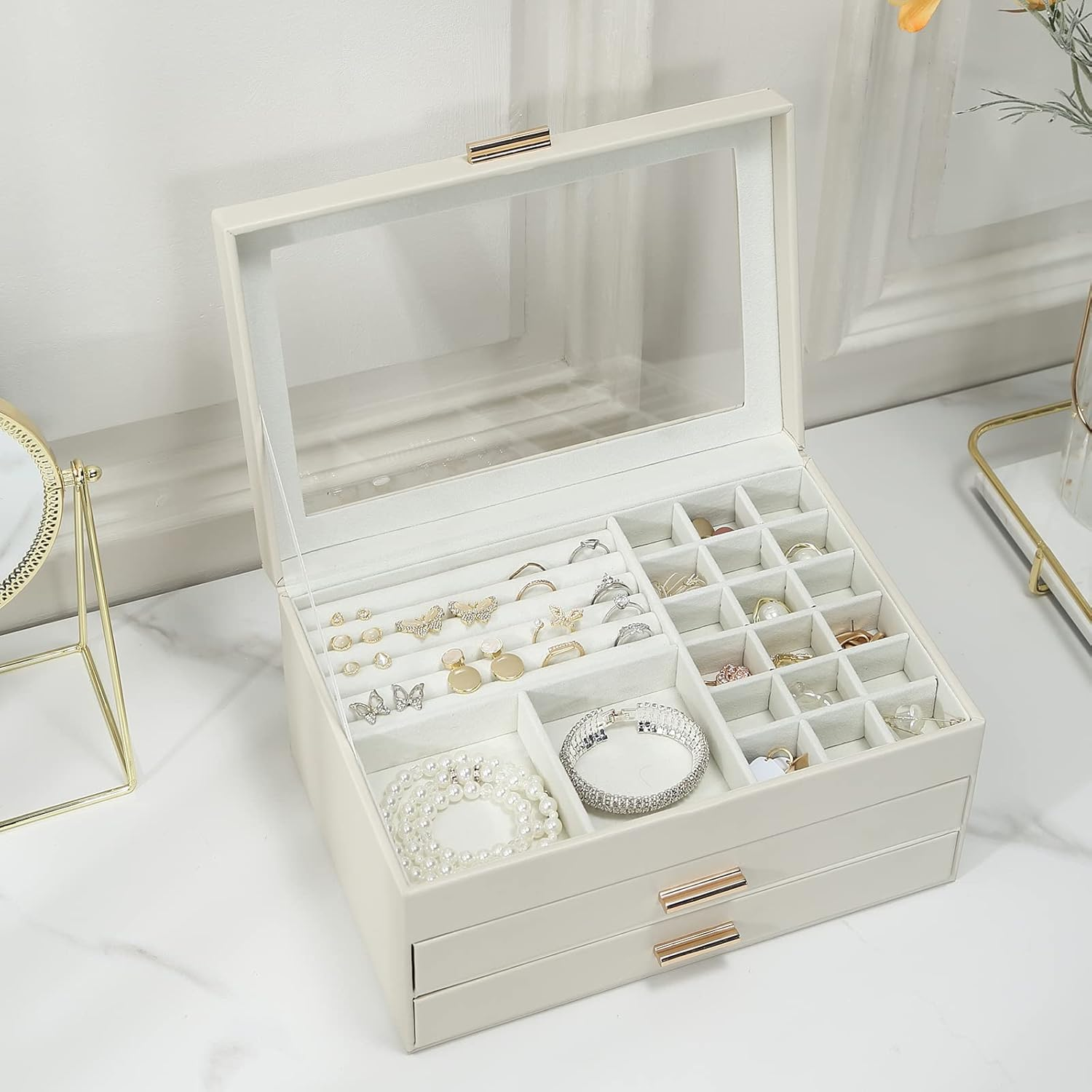Store New Arrivals Add to Favorite View Feedback Contact Jewelry Box for Women, 3 Layer Double Drawer Jewelry Organizer Glass Lid, Large Jewelry Display Case for Necklace Bracelet Earrings Rings Storage for Dresser, White Description Style Modern Number of Items 1 Country of Origin China Warranty Type No Warranty Batteries Included? No Jewelry Storage Type Jewelry Box Batteries Required? No Number of Compartments 4 Special Feature Waterproof, Dustproof, Adjustable Product Dimensions 10.4"D x 7.08"W x 5.3"H Material PU Leather, Velvet Number of Drawers 2 Finish Type Glossy Closure Type Slide Item Weight 3.39 pounds Finish Glossy Occasion Mother's Day, Christmas, New Year, Anniversary, Birthday Special Features Waterproof, Dustproof, Adjustable Target Audience Women, Girls Mounting Type Table Top Color White Inner Material Leather Shape Rectangular Recommended Uses For Product Necklace, Bracelet, Ring, Watch, Bangle Number Of Pieces 1 Practical Design&Simple Look: Three layer storage box with two drawer design, make all your jewelries will be neatly organized and easy to reach; Multifunctional jewelry box making the storage function more diversified, stylish appearance decor your home. Transparent windows make it easier to find your favorite jewels before you open it. You can use it in many situations such as living room, bedroom, wardrobe, jewelry store, never messy dressing table anymore. Durable Material&Perfect Size: Made of premium PU leather, great texture and stain resistant, with soft velvet lining, protect your jewelry from dust and scratch. Attractive surface, durable quality. Dimension: 10.4x 7.08 x 5.3 inch (L x W x H) . Multifunction Storage&Double Drawer: Three layers jewelry organizer box contains grids with different size to store all kinds of jewelries or cosmetics. Dividers in the drawers all can be removed to meet your different needs. Best Gift Choice: Jewelry display box will be a wonderful gift for Valentine's Day, Mother's Day, Thanksgiving, Christmas gift for her, birthdays and weddings for mom, girlfriend, colleague or someone special in your life. Product Description The video showcases the product in use. The video guides you through product setup. The video compares multiple products. The video shows the product being unpacked. Clear Glass Lid Jewelry Organizer Box Allows you to see and find your beloved jewels at a glance Large Capacity: 3-Tier 2 drawers, different compartments to keep all your jewelry neatly organized and easy to reach. Product Size: 10.4×7.08×5.3in Perfect Gift: Simple and modern design, ideal gift for yourself or someone special in your life. Clear Lid Jewelry Box CASEGRACE Jewelry box 8.7x 4.8x 6.7inch Product Size 10.4 x7.08 x5.3inch 2 color Color 6 color Removable Tray Girl & Women Target Audience Girl & Women PU Leather Material PU Leather Home Bedroom Vanity Occasion Home Bedroom Vanity 8.7x 4.8x 6.7inch Product Size 7.08x 3.8x 3.1inch 2 color Color 6 color Removable Tray Girl & Women Target Audience Girl & Women PU Leather Material Velvet & Leather Home Bedroom Vanity Occasion Travel take-to-go Clear Lid Jewelry Box Travel Jewelry Case ABOUT US We offer the best prices around on high quality products. Our E-store includes media such as books, movies, music and games while offering electronics, toys, sporting apparel, clothing, tools, general home, garden items and more. SHIPPING We are always working hard to ensure your package arrives as soon as possible. Please understand that some factors like weather, high postal traffic, and the performance of shipping companies are outside of our control. We offer free shipping to the lower 48 states and ship within 2 business days of payment, usually sooner. We do not accept P.O. Boxes. Please provide a physical address. For shipping outside of the continental USA, we only use eBay's Global Shipping Program.The item is shipped to KY and then sent to the rest of the world. International customers are responsible for all duties and taxes. Continue to check out in order to calculate costs for shipping the item to your country. Messages regarding eBay's Global Shipping Program MUST be directed at eBay EXCLUSIVELY. RETURNS We offer a 30-Day Return Policy on items which you are not completely satisfied with. You have the option for a full-refund or an exchange of the item. No returns are available on items shipped outside of the USA. PAYMENT We accept PayPal. CONTACT US This page content is yet to come Please ad us to your favorite seller and visit again later Thank You CUSTOMER SATISFACTION We try our very best to make sure every customer is completely satisfied. If there's a problem, message us! We're happy to help. WE ACCEPT Copyright © 2021 AutoDS. | All Rights Reserved