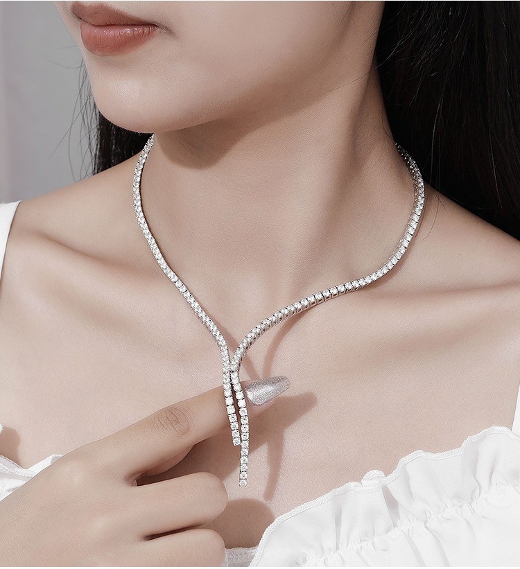 V Cut Moissanite Pendant Necklace Sparkling Silver Elegant Evening Party Jewelry Necklace chain length: 15- 24IN Materia l: S925 S ilver , Stone: Moissanite Diamond : Fine polishing Please note: We promise a 100% pass rate with a diamond tester. The test result will be positive, and the brilliance will last a lifetime. Package includes: 1 pcs Necklace, accompanied by a jewelry gift box, and GRA certificate. Method to verify moissanite: Please use a diamond tester for verification. If it cannot pass the test, it is 100% not moissanite. Our store guarantees that all jewelry sold is moissanite and will 100% pass the tester. Why Choose This Certified Moissanite Tennis Necklace? Because It’s Not Just Jewelry—It’s the Dazzling Witness to Your Unique Story. Each moissanite stone is like a glimmering star polished by time, carrying the precious moments you’ve shared together. It’s not just a sparkling adornment for your neck but also an irreplaceable token of emotions deep within your heart. Whether you’re buying it for yourself or gifting it to a loved one, this necklace will stand as a timeless witness to your bond. The unisex design makes it a perfect choice for couples, or a thoughtful gift for parents or friends. Crafted from 925 sterling silver , it’s gentle on the skin and ready to accompany every important moment. The certified moissanite stones , with their unparalleled brilliance, rival the luxury of diamonds while adding a unique warmth and sense of story. The freedom to layer allows you to mix and match according to your mood and occasion. Whether worn alone or paired with other necklaces, it exudes an effortless elegance and a fashionable attitude. Its radiance not only illuminates your appearance but also warms your heart. This is more than a gift—it’s a promise. Let it become a witness to your story, capturing every smile, every hug, and every precious memory. Now, let this necklace be your way of expressing love. Because it’s not just a piece of jewelry—it’s the unspoken emotions in your heart. Choosing it means choosing an eternal love and companionship. Let this necklace mark the beginning or continuation of your story. Because it’s not just a sparkling accessory—it’s the most sincere emotion deep within your soul. The value of moissanite lies not only in its beauty but also in the love and memories it carries. Choosing this necklace is choosing a lifestyle—effortless, elegant, and full of love.