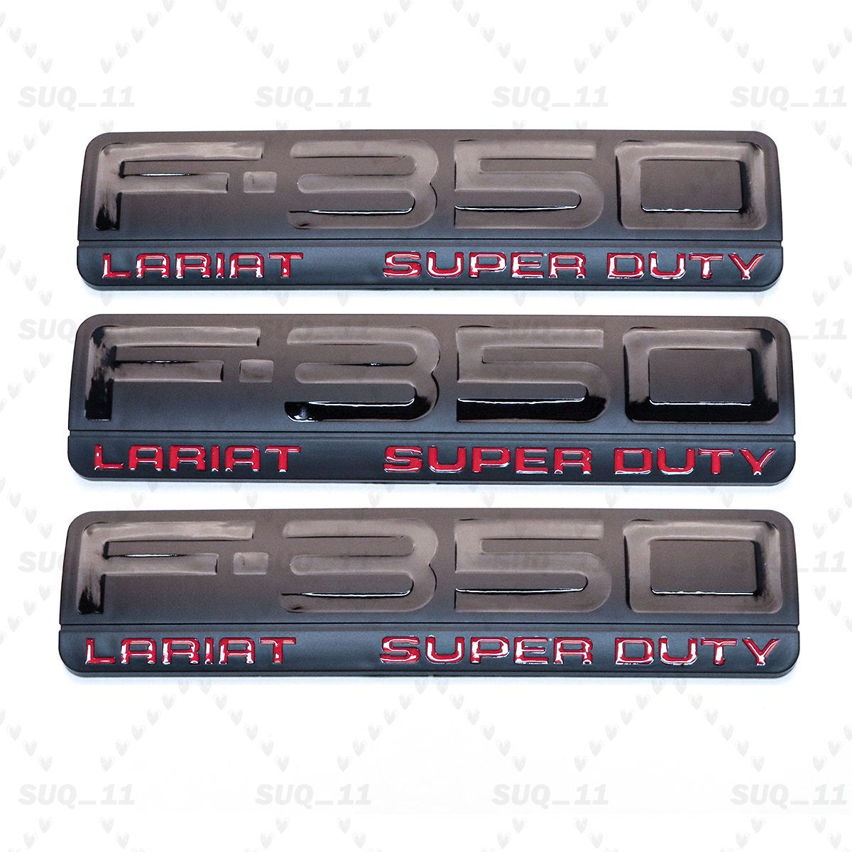 Features: 1.100% brand 3D new and High quality. 2. This is Real 3D emblem and NOT just a thin stickers, Not overlay emblem, It can replace the original emblems. 3.The emblems can stick on your car strongly and last on for a long time, Comes with adhesive on the back, just peel and stick it on your vehicle. 4.Installation: Please use detergent or alcohol to clean the surface of the target and keep clean and dry. 5.Please stick in the flat, Not an arc place. Fits For: For-d F-350 Super Duty Truck Color: Black&Red Design: F-350 Lariat Super Duty Package Include: 3X "F-350 Lariat Super Duty" Emblem