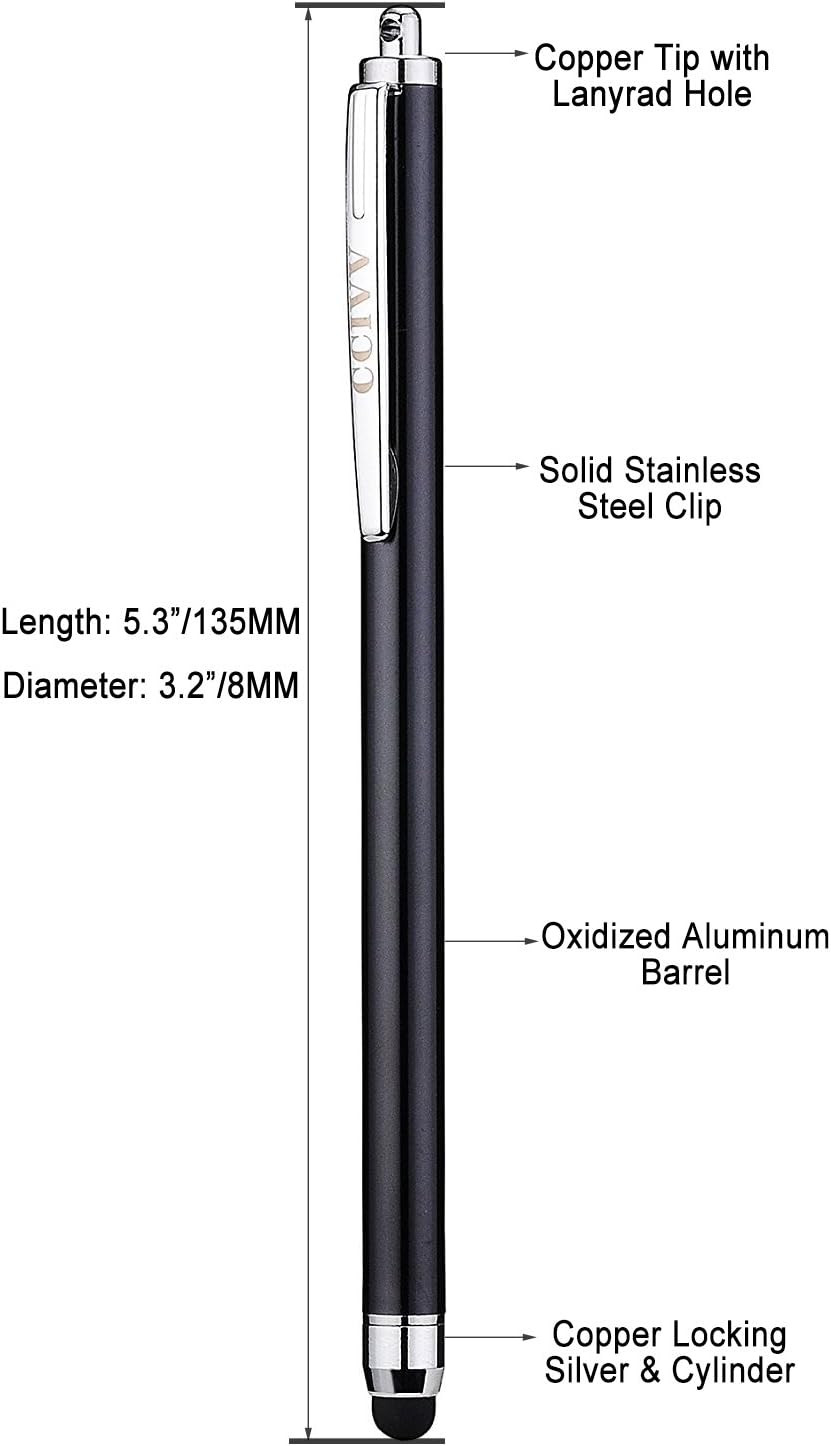 Stylus Pens for Touch Screens iPad iPhone Kindle 3 Pcs, Pink/Purple/AquaBlue Product Details Product Dimensions: 5.31 x 0.31 x 0.31 inches Item Weight: 0.37 ounces Item model number: 74 Is Discontinued By Manufacturer: No Manufacturer: CCIVV Color: Pink/Purple/AquaBlue Brand: CCIVV Material: Aluminum Item Weight: 10.5 Grams Compatible Devices: Tablet, Smartphone Item dimensions L x W x H: 5.31 x 0.31 x 0.31 inches Are Batteries Included: No Batteries Required?: No Compatible with all capacitive touch screen devices, Including Apple iPad Air, iPad Pro, iPad, iPad mini, iPhone 15/14/13, iPhone 15 Pro/14 Pro /13 Pro, Kindle Fire HD, Samsung Galaxy Tab and Nexus 10 Durable soft rubber tip protects your screens from sweat, grease, finger marks, etc. Stylus designed in pen model (5.3 inch x 0.32 inch / 135MM x 8MM), a real pen feeling when you use on your devices With a steel clip designed, easy to carry around; a top hole allows you to attach your device with a lanyard Different colors for daily use in different rooms, offices; perfect gift for family members or friends
