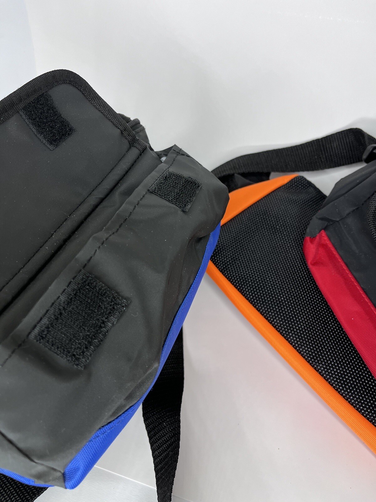 Shoulder Bag Lunch Boxes/Coolers Lot 3. Three generic lunch box size coolers with should straps. Red, blue, orange. Unused, like new.