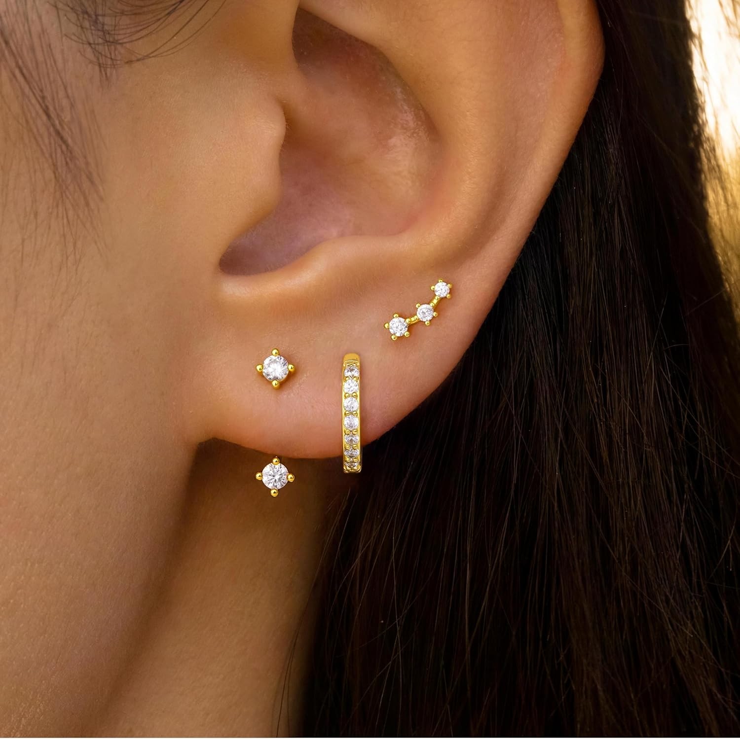 Gold Stud Earrings Set for Women, 3 Pairs Huggie 04White Diamond-Apr.(gold) Product Details Brand, Seller, or Collection Name: Poxtex Material: Yellow Gold Gem Type: Cubic Zirconia Setting: Post Item Length: 0.2 inches Back finding: Push Back Number of stones: 6 Package Dimensions : 2.6 x 2.6 x 0.68 inches Department : womens
