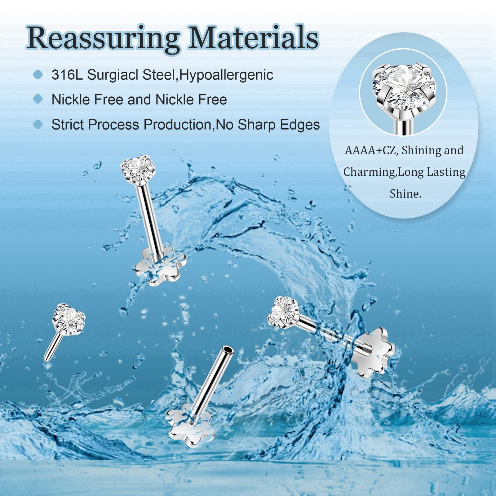 3Pairs 20G Surgical Steel Threadless Studs Earrings Push in Flat Back Earrings Hypoallergenic Threadless Nose Studs Cartilage Helix Tragus Piercing Jewelry Product Details Size: 2/3/4mm CZ Color: Silver Brand: Masedy MPN: SSAE26 UPC: Does not apply EAN: Does not apply Item model number : SSAE26 Department : womens Date First Available : April 24, 2024 Manufacturer : Masedy Brand, Seller, or Collection Name: Masedy Metal stamp: 316L Metal: Stainless Steel Material: Stainless Steel, Cubic Zirconia Item Length: 0.39 inches Back finding: Push Back Model number: SSAE26-S-20G-234