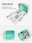 0 🏠 Jumbo for Home Luxury:13"x9"x4" soft faux leather case organizes vanity/bathroom essentials (hairdryer, 10 skincare bottles, 20 lipsticks). Matte leather exterior + clear panel = elevated storage, not plastic clutter ✈️ Standard for Travel’s Tough Ally:8"x6.9"x3" reinforced PVC bag withstands luggage pressure. Fits: 500ml shampoo + flat iron + 5 skincare full-sizes or a 11" laptop + charger + toiletries. Won’t collapse when stuffed! 👜 Mini For TSA’s BFF:8"x4.5"x3" clear pouch glides through airport security. Holds: AirPods + 5 lipsticks + keys or emergency meds + mini tools 🛡️ Thoughtful Toughness: Smudge-proof PVC (wipes clean from foundation/coffee). Silent metal zippers (2x more durable than standard). Jewel-tone blue lining (hides stains, stays chic) 🎁 Gift-Ready Sophistication : Perfect for bridesmaids, college move-ins, or busy moms — "Finally, storage that looks as good as my makeup!"