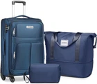 Expandable Carry on Luggage Set: 3 piece set includes 20" carry on suitcase, a travel duffel bag and a toiletry bag. Suitcase expands an additional 2.0 inches for additional space when needed Premium Suitcase Set: Soft shell luggage is crafted from premium quilted lightweight and durable 1680D polyester fabric exterior which resists stains and abrasions. Additionally, its anti-wear edge design ensures long-lasting usage, making it a reliable choice for all your travel needs Designed for Quick Access: The exterior of this luggage boasts two convenient large pockets for quick-reference essentials like passports, boarding passes, books, tablets, and whatever else you want close at hand. Full zipper internal dividers and compression straps increase the organization of the packaging and fasten your belongings securely Secure Combination TSA Lock: Each of the travel luggage completes with TSA-approved lock to keep your belongings safe. Reinforced and upgraded zipper that won't drop or break easily Effortless Maneuverability: Experience superior mobility with the 360° rotation spinner wheels that glide smoothly and silently on any surface. Navigating through busy airports has never been easier.This luggage set makes a great thoughtful gift idea for birthdays, anniversaries, Valentine’s Day, Mother’s Day, Christmas, or any special event Product Description Luggage Set With Duffel Bag The duffel bag is designed with the back sleeve, so you can conveniently attach them to the retractable luggage handle. Premium High-End Materials Make Your Trip More Enjoyable The luggage is the classic lightweight collection that provides a seamless travel experience. The video showcases the product in use. The video guides you through product setup. The video compares multiple products. The video shows the product being unpacked. Two Large External Pockets Scientific and Convenient Design Convenient dual front pockets with zipper provide quick access to essentials like passports, boarding passes, books, iPad, and whatever else you want close at hand. Full zipper internal dividers Spacious Packing Interior Spacious interior split case designed and smooth zippers for ease-packing. Additional Space Ordinary size: 22.5x8.6x12.5" Expansion Dimension: 22.5x8.6x18" 1 +25% EXPANSION 2 TSA-APPROVED LOCK 3 SPACIOUS INTERIOR 4 LARGE CAPACITY 5 360° SPINNER WHEELS Reinforced Grip Handles Top and side handles with soft rubber padded grip for maximum comfort and ease of use. 1 Size Reference 2 Lightweight yet Durable 3 Top Quality 4 Padded Handles LARVENDER Premium Luggage Sets Collection Add to Cart Add to Cart Add to Cart Add to Cart Add to Cart Customer Reviews 4.3 out of 5 stars 400 4.4 out of 5 stars 630 4.3 out of 5 stars 382 4.3 out of 5 stars 712 4.4 out of 5 stars 630 Price $79.99 $ 79 . 99 $209.99 $ 209 . 99 $169.99 $ 169 . 99 $159.99 $ 159 . 99 $199.99 $ 199 . 99 Luggage Type 3-Piece Set 6-Piece Set 6-Piece Set 6-Piece Set 6-Piece Set Size 20"/Duffel bag/Toiletry Bag 18“/20"/24"/28"/DB/TB 18“/20"/24"/28"/DB/TB 12"/14"/18“/20"/24"/28" 18“/20"/24"/28"/DB/TB Shell Material Oxford Fabric Materials PC+ABS Materials ABS Materials ABS Materials ABS Materials Spinner Wheels 360° Single Spinner 360° Dual Spinner 360° Dual Spinner 360° Dual Spinner 360° Dual Spinner Expandability ✔ ✔ ✔ ✔ ✔ Telescopic Handle ✔ ✔ ✔ ✔ ✔ TSA Lock ✔ ✔ ✔ ✔ ✔