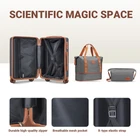 【3 Piece Luggage Sets】 The luggage set of 3 pieces offers 20" carry on luggage, duffel bag with straps and toiletry bag, can be nested together for easy storage. 【Silent 360° Double Spinner Wheels: Smooth Rolling】 This travel suitcase has sturdy spinner wheels for smooth airport navigation, even on rough surfaces, thanks to its superior direction control system. 【Side-Mounted Combination Lock: Convenient Security】 The carry-on suitcase comes with a high-quality 3-digit built-in combination zipper lock, providing theft prevention and ensuring safer and more reliable travels. 【Ergonomic Handles: Telescoping and Two TPU Elastic Handles】 This travel accessory features a sturdy three-step handle adjustable to different heights for comfort. Its smooth up-and-down design makes carrying easier. Top and side handles are easy to grip and designed with soft rubber for finger protection when lifting heavy objects. 【Scientific Magic Space: Stress-Free Packing】The fully lined interior of this carry-on offers compression straps, zipper compartments, mesh pockets, and partitions for easy organization. With a 35-liter capacity, including a weekender travel bag and toiletry bag, your travel becomes convenient and effortless, ensuring you're ready for the journey.