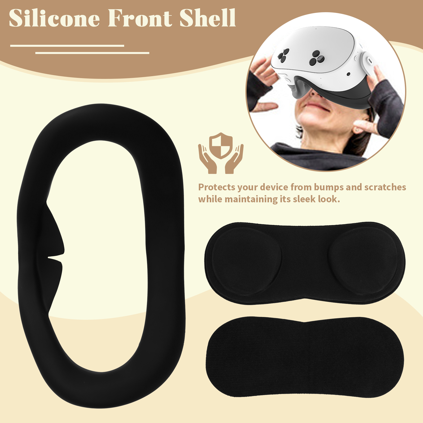 For 3S Silicone Host Cover with Controller Protector and Lens Cover for 3659 Enhance your VR experience with our comprehensive accessory kit for the Quest 3S. This bundle includes: Silicone Front Shell: Protects your device from bumps and scratches while maintaining its sleek look. Face Cover: Made from soft High-quality materials, it provides a comfortable barrier that keeps your headset clean and sweat-free. Controller Protector: Guards against and wear, extending the life of your controllers. Lens Cover: Keeps the lenses free from dust and scratches, ensuring clear vision. Due to different batches, there may be differences in product appearance and printed text, which not affect use Colour:Black Material:ABS Package Contents: 1 x Host protective cover 1 x Face mask 1pair x handle protective covers 1 x Lens cover 1pair x joystick covers 1 x Wiping cloth