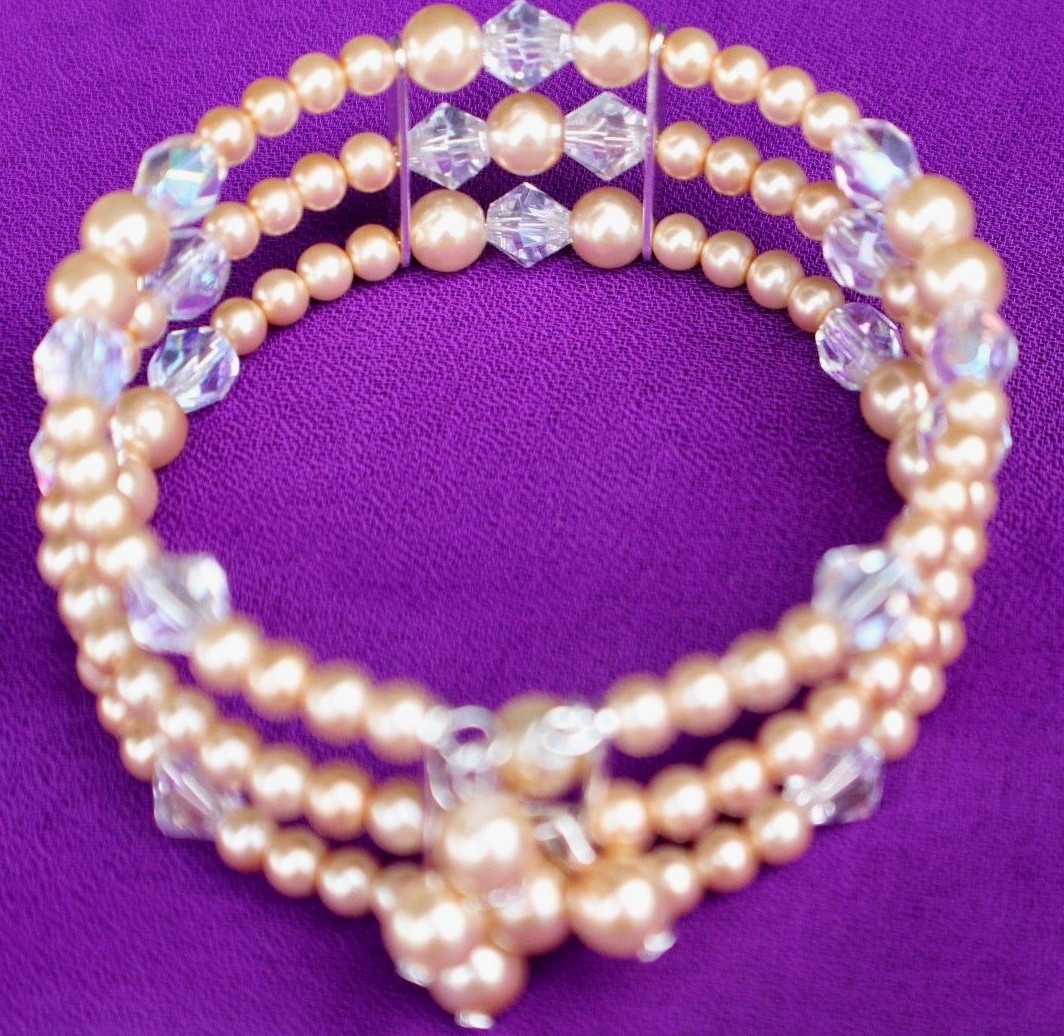 Beautiful 3 strand hand-crafted 6mm and 4mm Bronze Glass Pearl beaded bracelet with 6mm round and bicone aura borealis Austrian crystal beads. Bracelet fits size 7 to 9. Also has glass pearl beads and Austrian crystal dangles from the ends. Nickel-free, and Lead-free. *** International Buyers ~ Please Note: *** * Import duties, VAT, taxes, and charges are NOT included in the item price or shipping cost. These charges are the Buyer's responsibility. The Seller has no involvement with that. eBay or PayPal will contact you on how to handle this. * Shipping Time - We ship our packages out very quickly. * Once we have sent it out, we are not in control of or responsible for shipping delays due to customs processing, weather, weekends, holidays, or for long distance shipping. ***Terms and Conditions*** *Returns are accepted within 30 days of the item’s shipment date. *All items MUST be in their original condition, not worn or altered. *We do our best to provide a true representation of our products. Sometimes, because of enlarging the photo or because of individual monitor settings, there may be slight variations in colors. *Occasionally we discover that an item is damaged and we are unable to ship it. We reserve the right to cancel any order and refund the money paid. ***FEEDBACK*** We hope to receive positive feedback with 5 star rating on Item as described, Communication, Shipping time, and Shipping and handling charges. If you find any problem on the item you received, please contact us to solve it for you before you leave any negative/neutral feedback or low detailed seller rating. Please kindly wait for our response before you leave us feedback. We promise your problem will be solved as soon as possible. We guarantee 100% satisfaction!