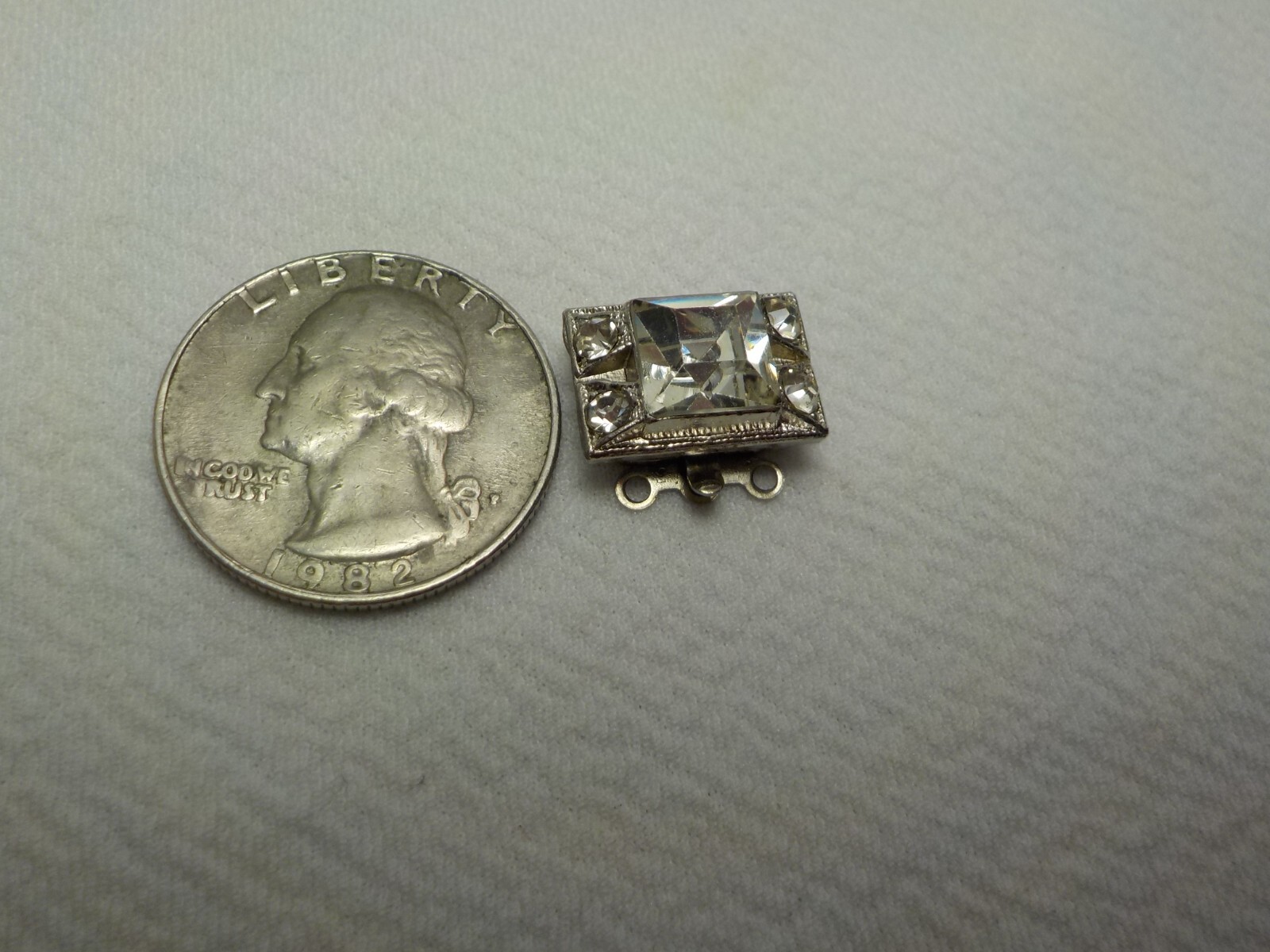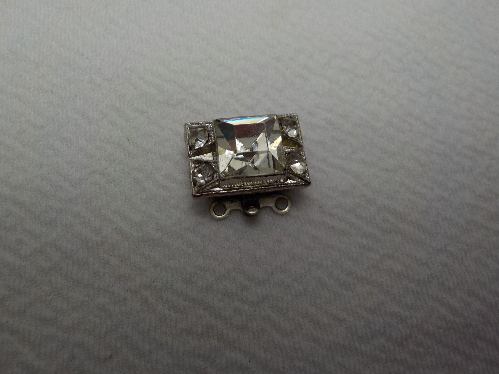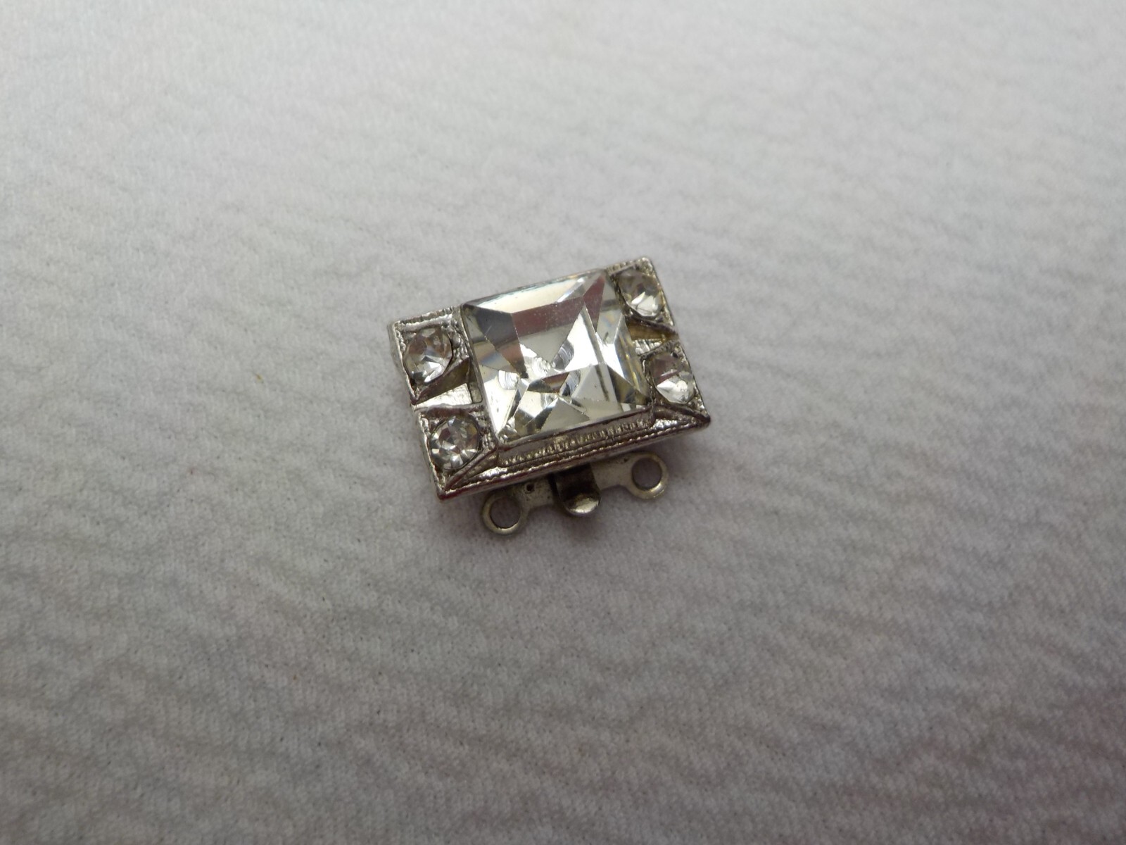 Add some sparkle to your accessories with this beautiful rhinestone box clasp. The clasp is suitable for both necklaces and bracelets, and features a silver color that will complement any outfit. The closure type is a box clasp, which ensures your jewelry stays securely fastened. This jewelry finding is an original piece and comes as a single item. The metal purity and metal type are unknown, but it is perfect for those who want to add a touch of elegance to their jewelry collection. This clasp is perfect for those in the fashion jewelry department, and can be used to repair a 3 strand necklace or bracelet. MEASURES APPROX 15.2 BY 10.5 MM,
